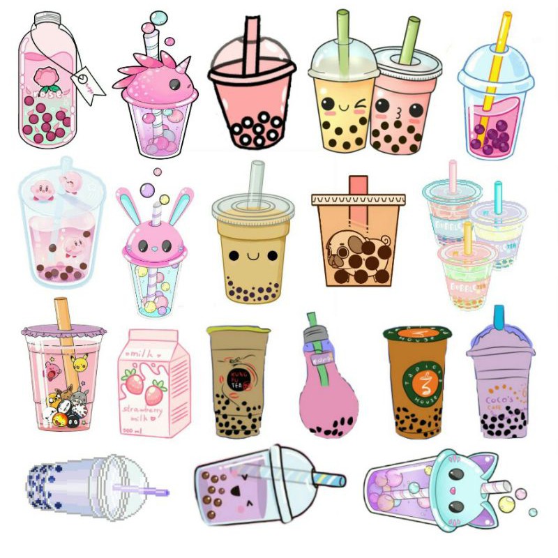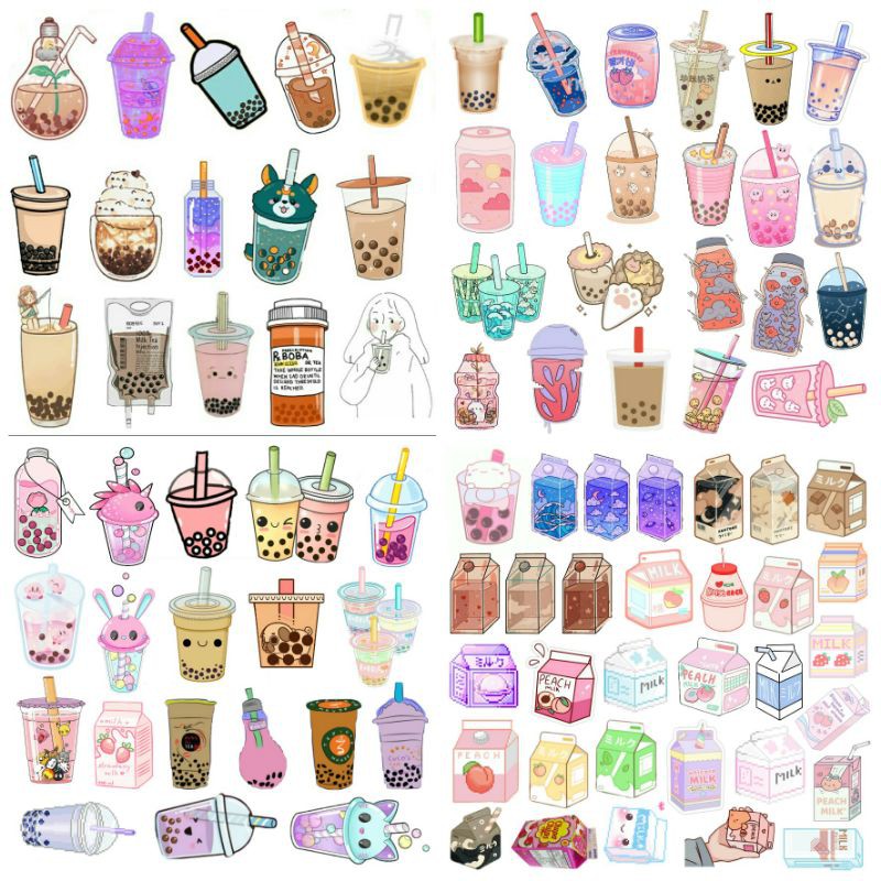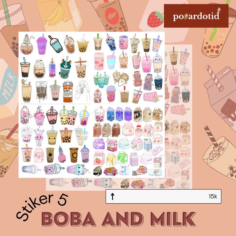 Sticker Boba and Milk | Sticker Bullet Journal| Sticker Beruang Lucu | Sticker Aesthetic | Sticker Tumblr | Sticker Case | Sticker Handphone |