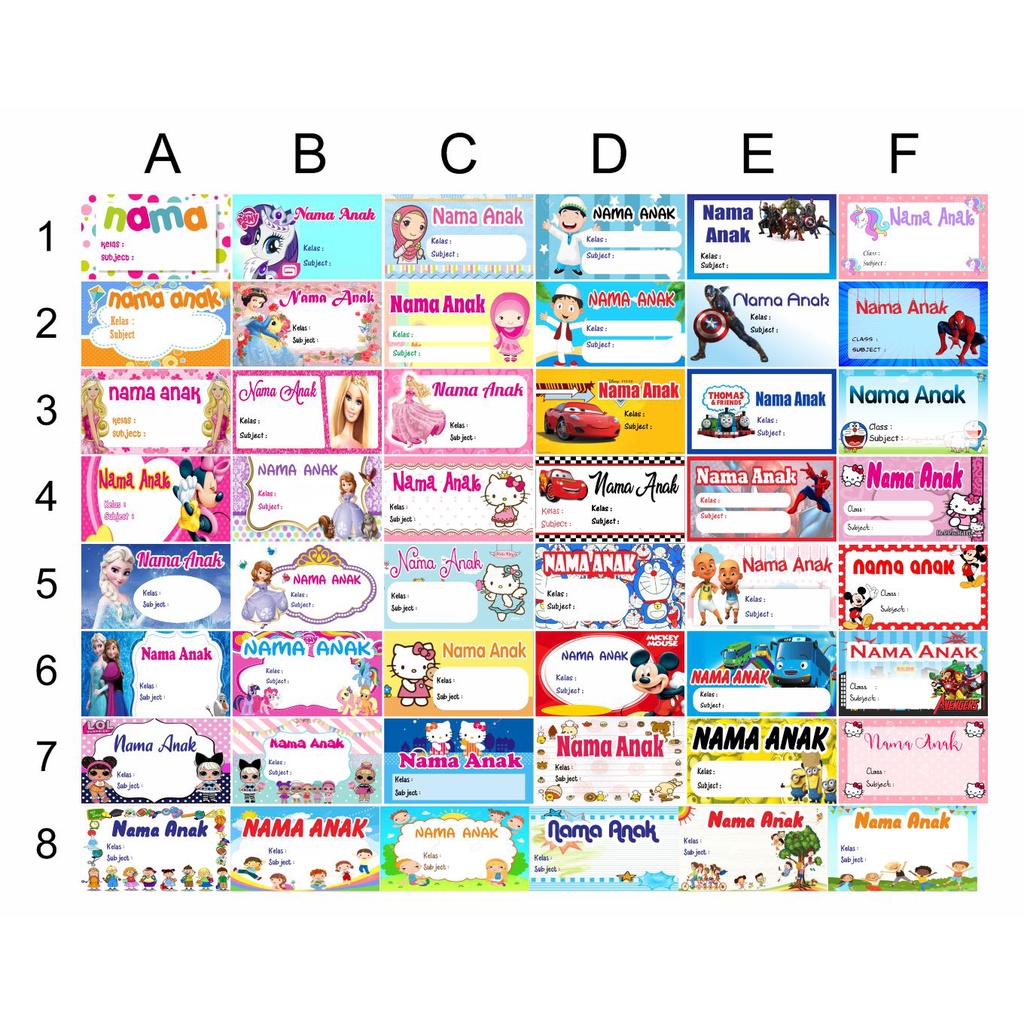 Sticker Buku Pelajaran / Label Nama Pelajaran Anak Pakai Nama Foto Custom