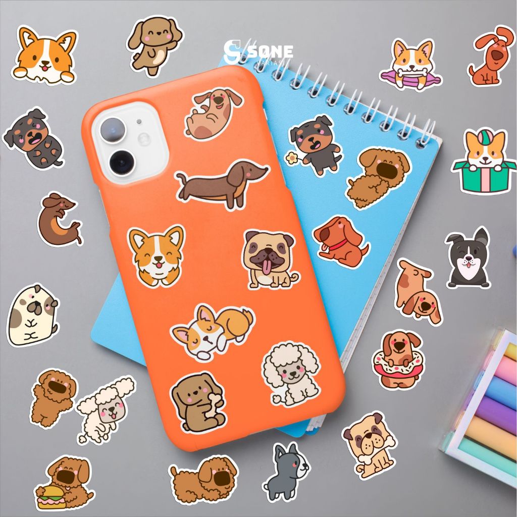 Sticker CUTE DOG || Stiker Hewan Anjing Lucu Dekorasi Buku Jurnal Laptop HP Casing