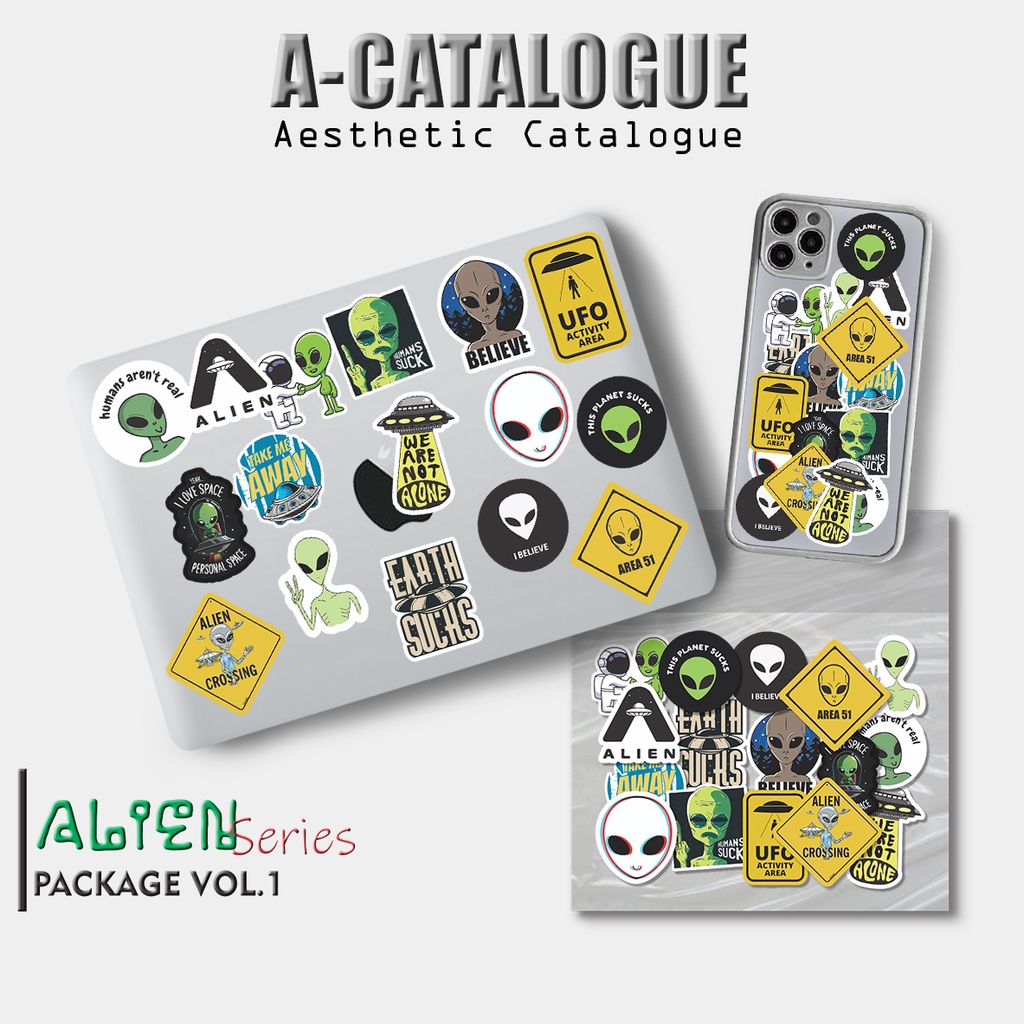 Sticker Case Handphone Laptop Tumblr Bujo Aesthetic Skateboard Galaxy Astronaut || ALIEN VOL.1