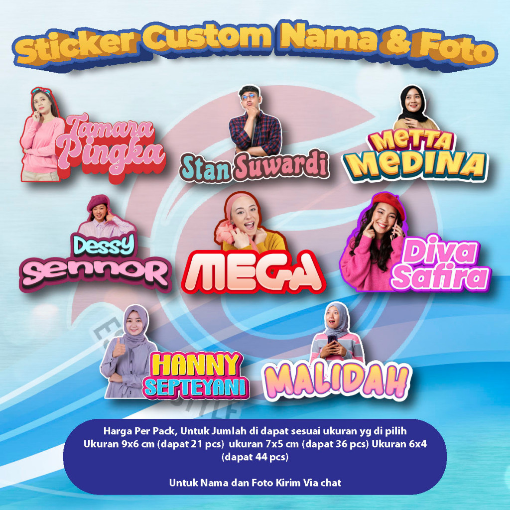 Sticker Custom Foto dan Nama (Per Pack isi 21 Pcs ukuran 9x6 cm) (Per Pack isi 36 Pcs ukuran 7x5 cm) (Per Pack isi 44 Pcs ukuran 6x4 cm)
