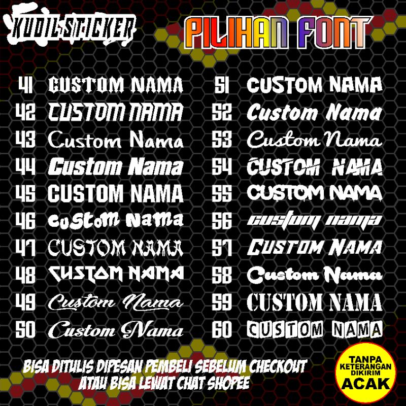 Sticker Cutting Nama Custom Hologram Model Pakai Dasar & Tanpa Dasar| Sticker Motor| Sticker Helm| Sticker Nama