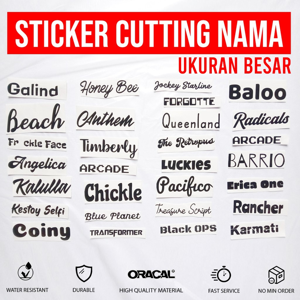 Sticker Cutting Nama Tulisan Bebas Custom Logo Mobil Motor Sepeda Cuting Stiker Ukuran M L XL XXL