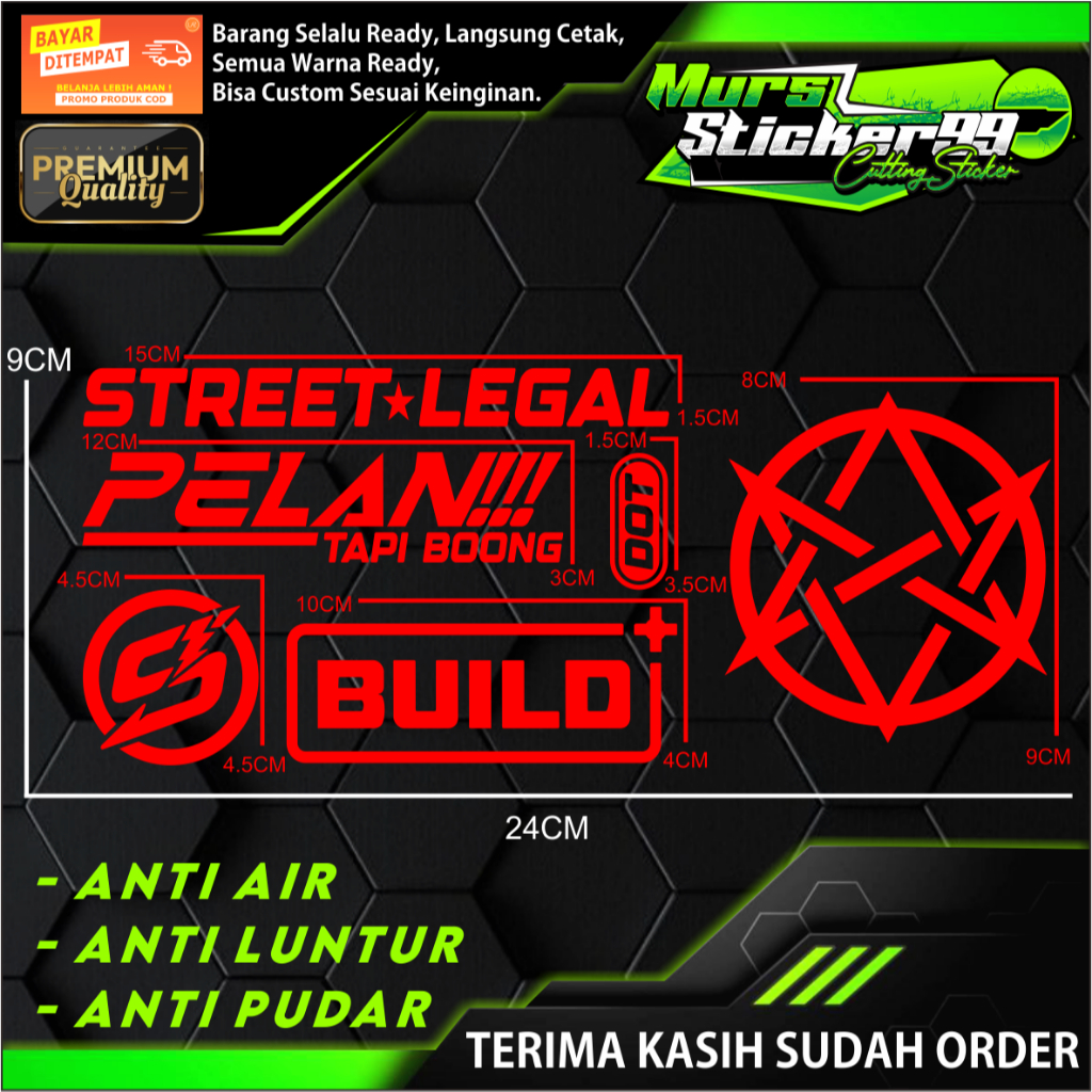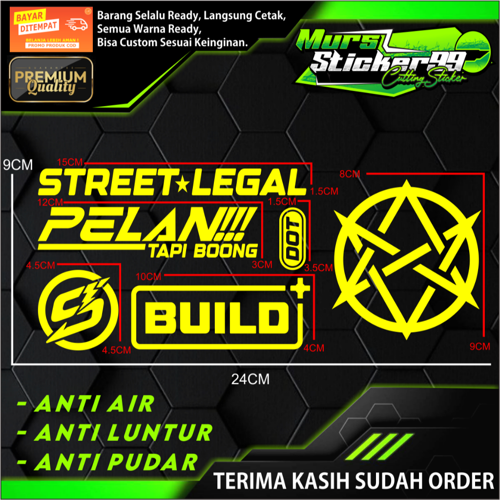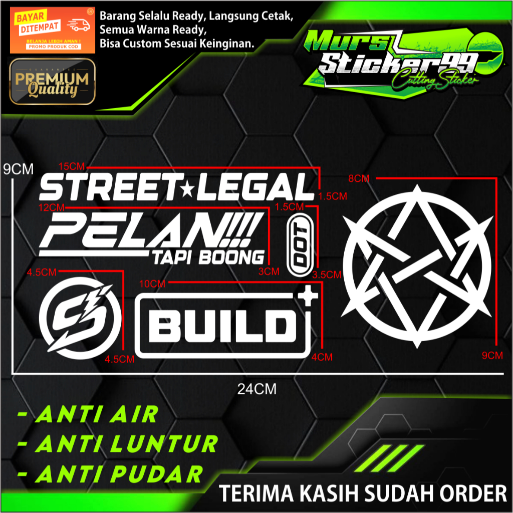 Sticker Cutting PAKET 6 IN 1 STREET LEGAL BINTANG V1 PELAN TAPI BOONG DOT LOGO S BUILD+ Cocok Untuk Motor Dan Mobil