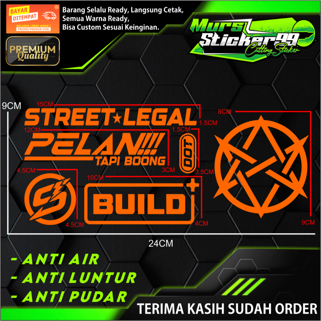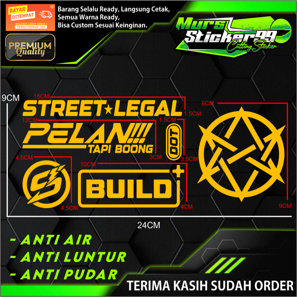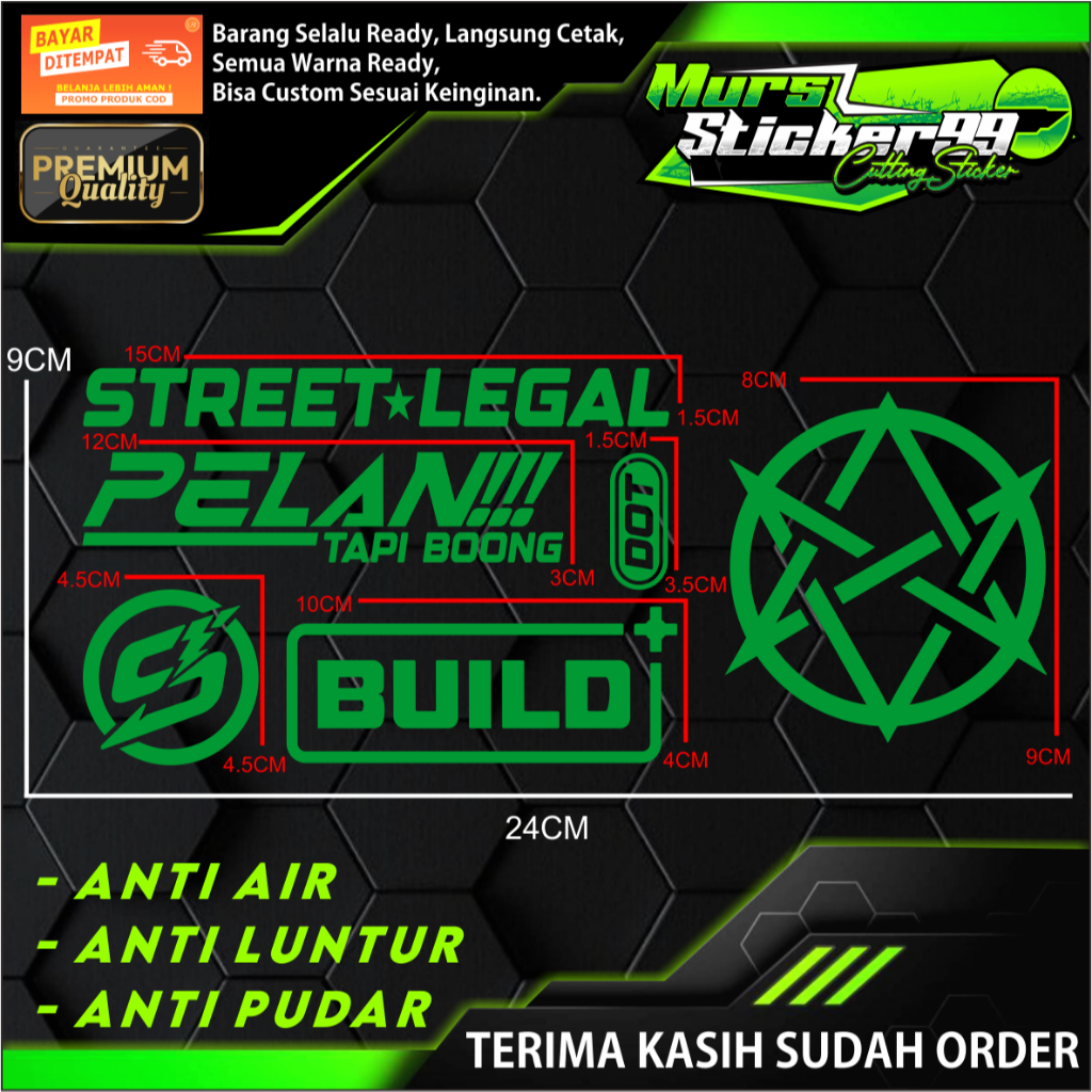 Sticker Cutting PAKET 6 IN 1 STREET LEGAL BINTANG V1 PELAN TAPI BOONG DOT LOGO S BUILD+ Cocok Untuk Motor Dan Mobil