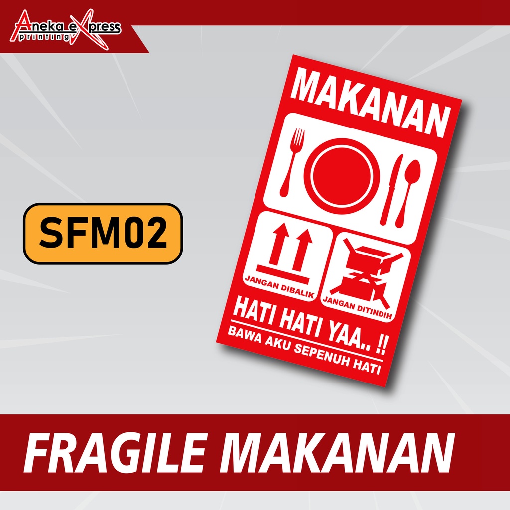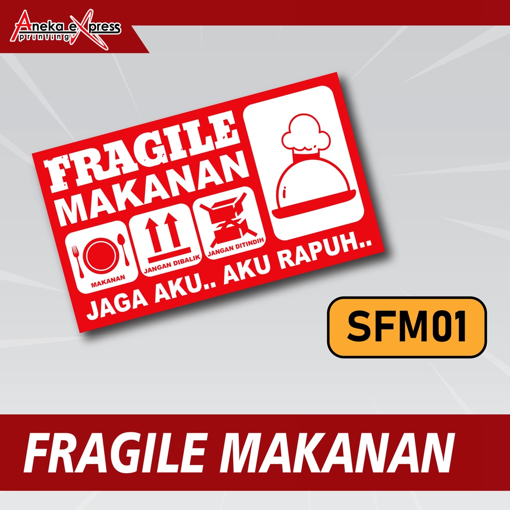 Sticker Fragile Makanan | Stiker Pecah Belah Kemasan Makanan | Label Pengiriman Makanan Awas Pecah