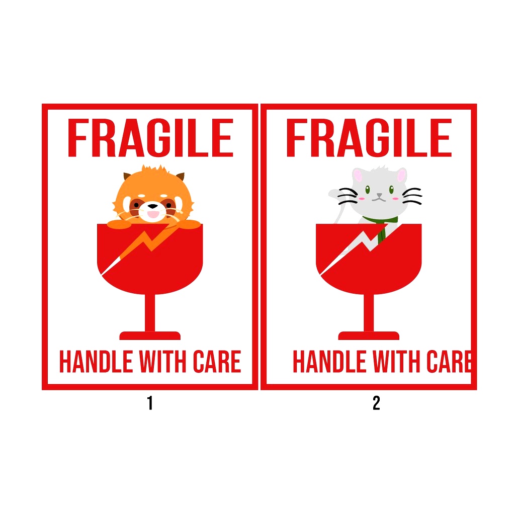 Sticker Fragile stiker fragile kirim pengaman bahan glossy handle with care pengaman paket seal