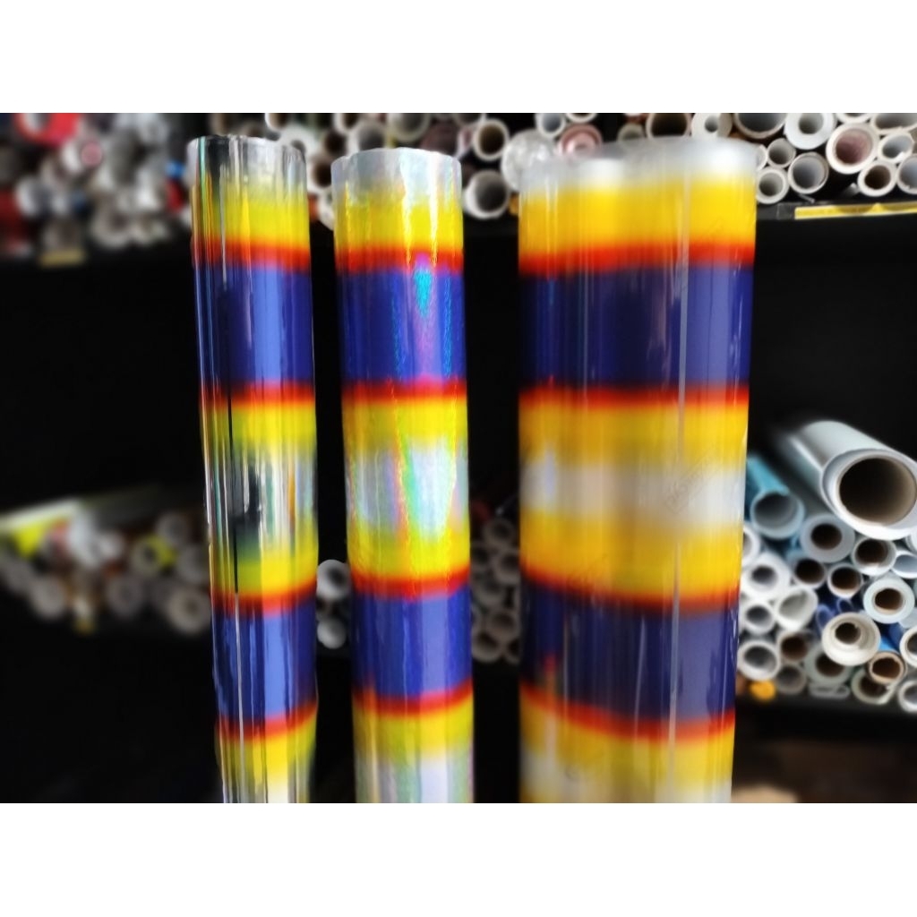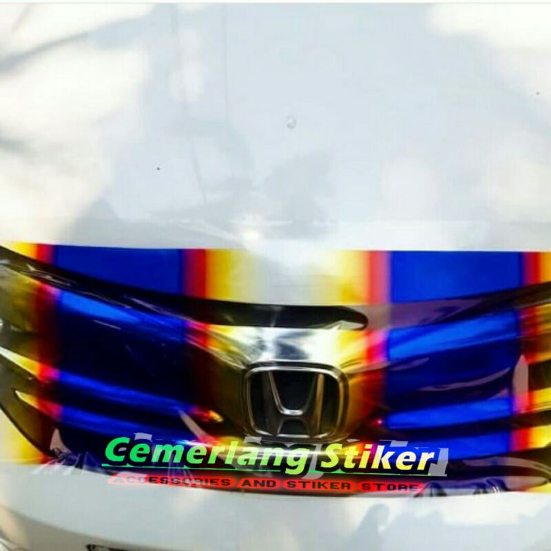 STIKER SKOTLET JDM MOTIF TITANIUM GRILL MOBIL / Stiker pelangi titanium Tranparan L-30CM X120CM