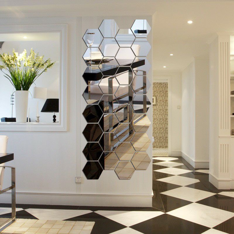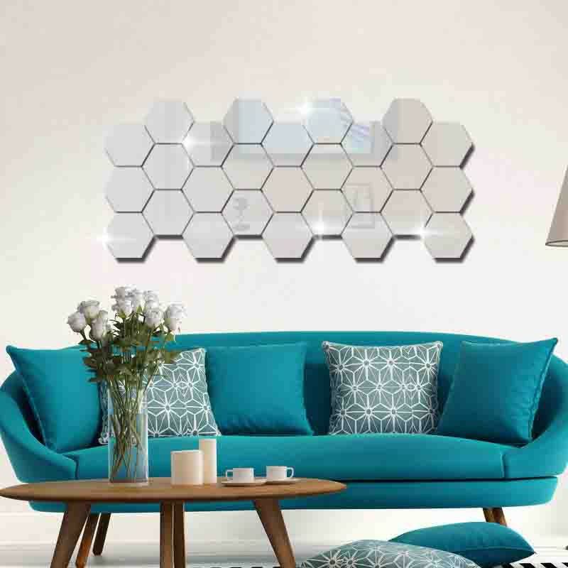 Sticker Kaca Dekorasi Dinding Hexagon Mirror Acrylic 7 PCS Stiker Kaca Dinding Akrilik