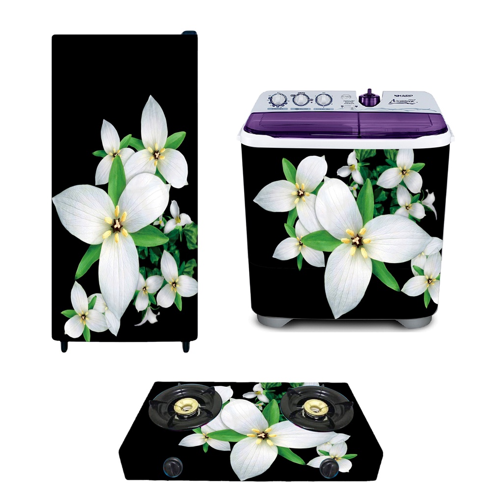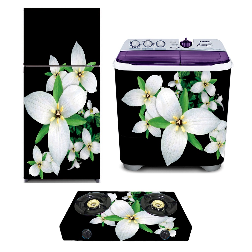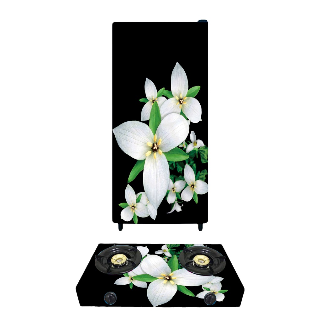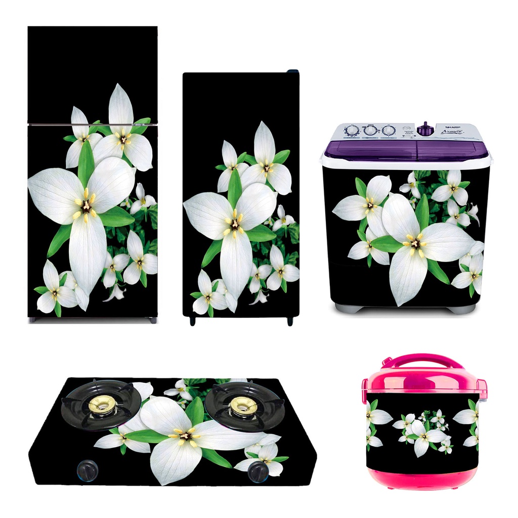 Sticker Kulkas 1 Pintu/Kulkas 2 Pintu/Kompor/Mesin Cuci/Ricecooker Bunga Hitam Putih