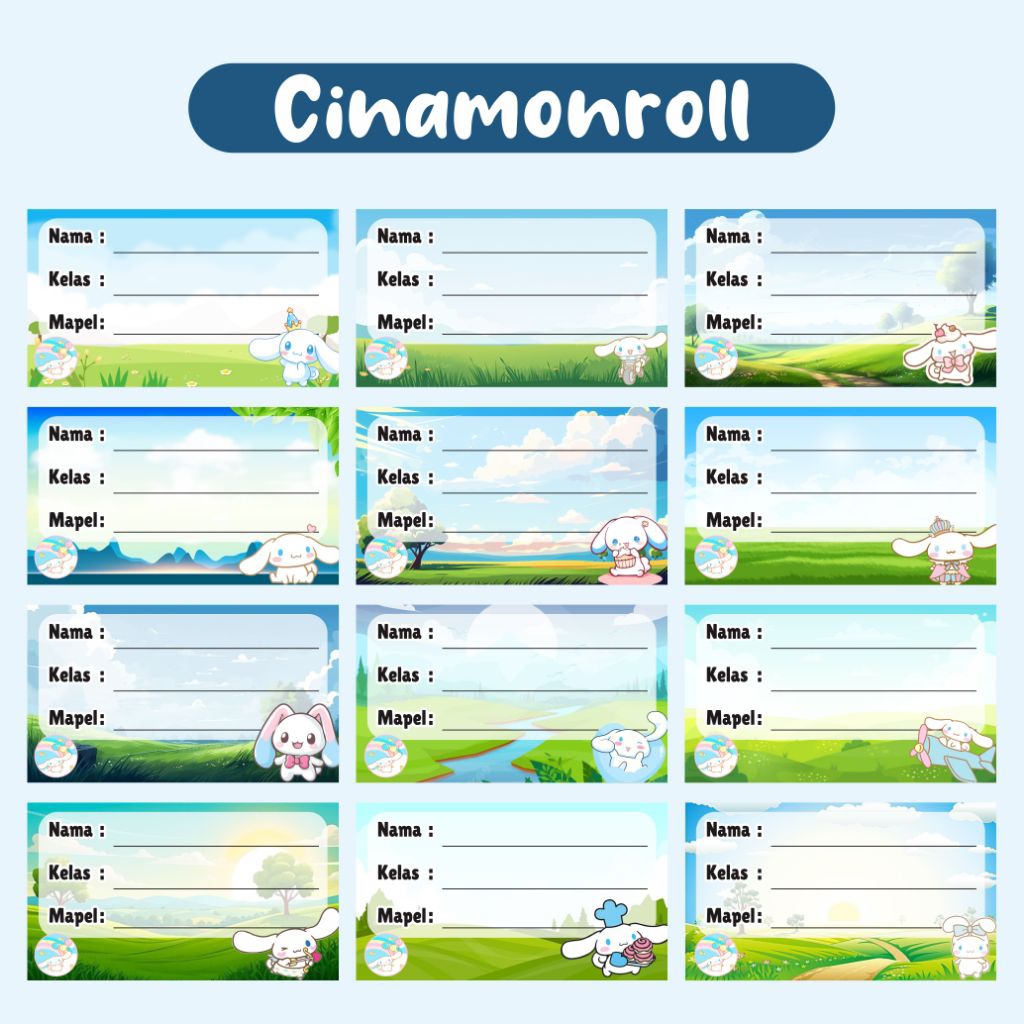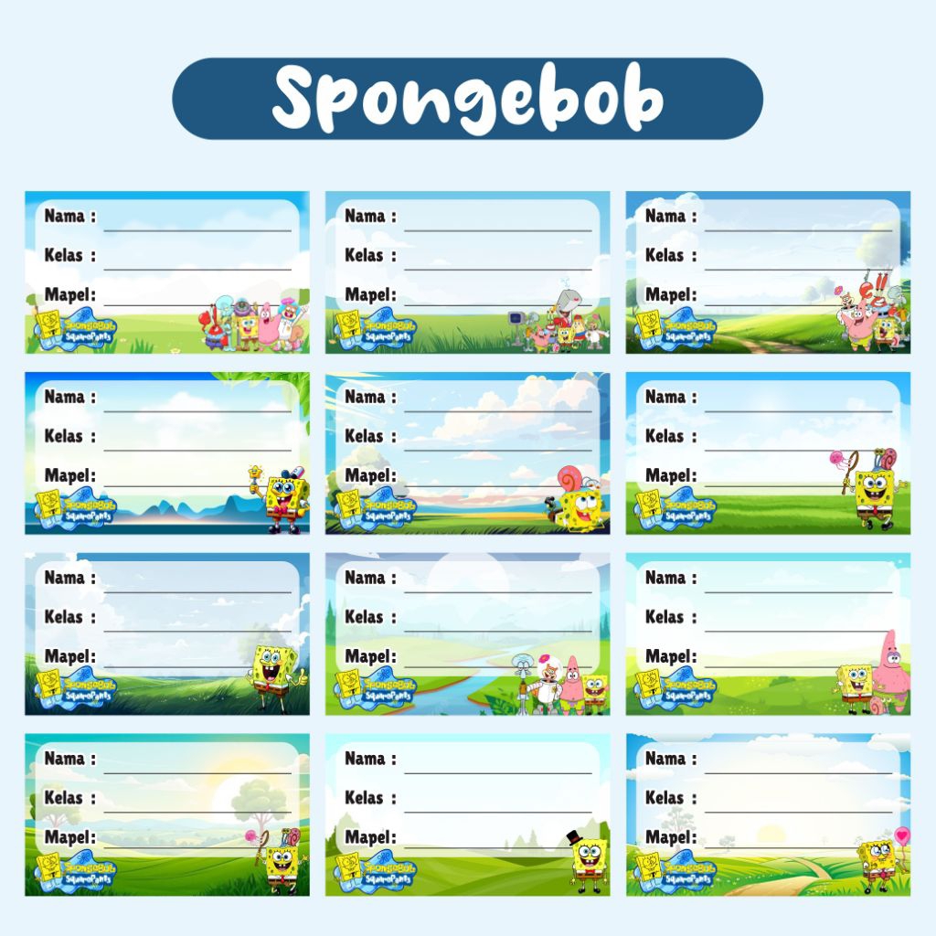 Sticker Label Nama Buku Anak Sekolah Custom Karakter Lucu Unik | Labubu, SpongeBob, Doraemon, Kuromi, Cinamonroll