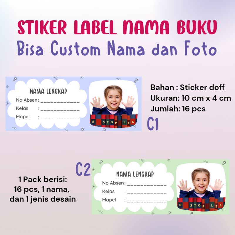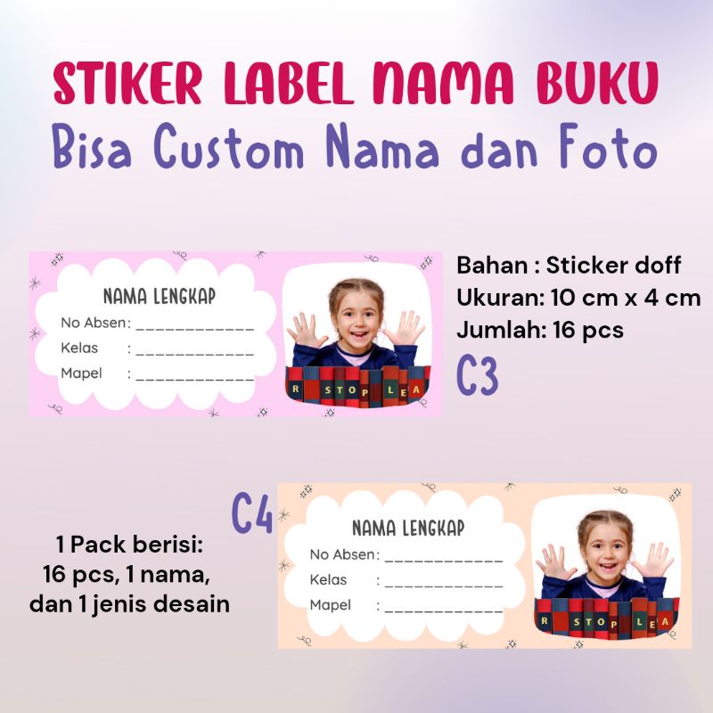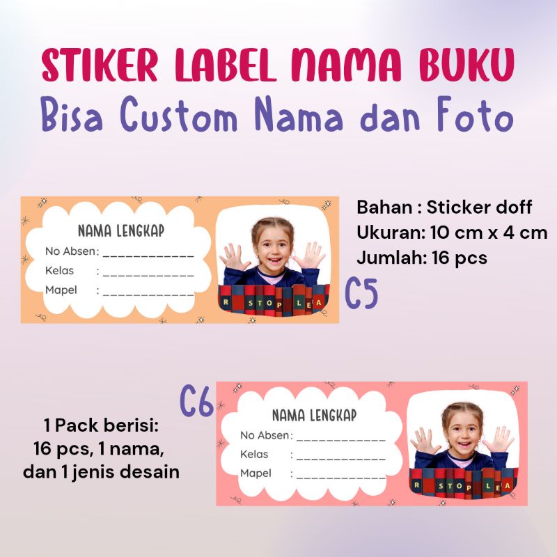 Sticker Label Nama Buku | Custom Nama dan Foto | Perlengkapan Sekolah