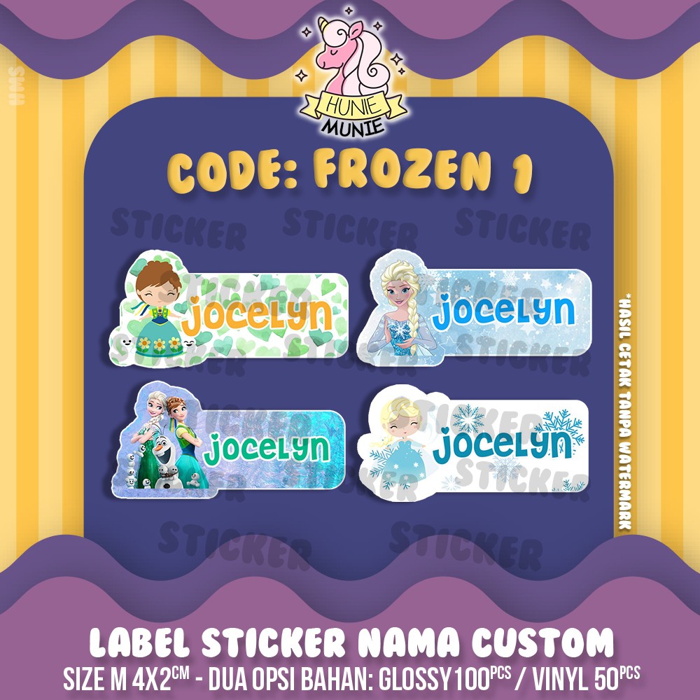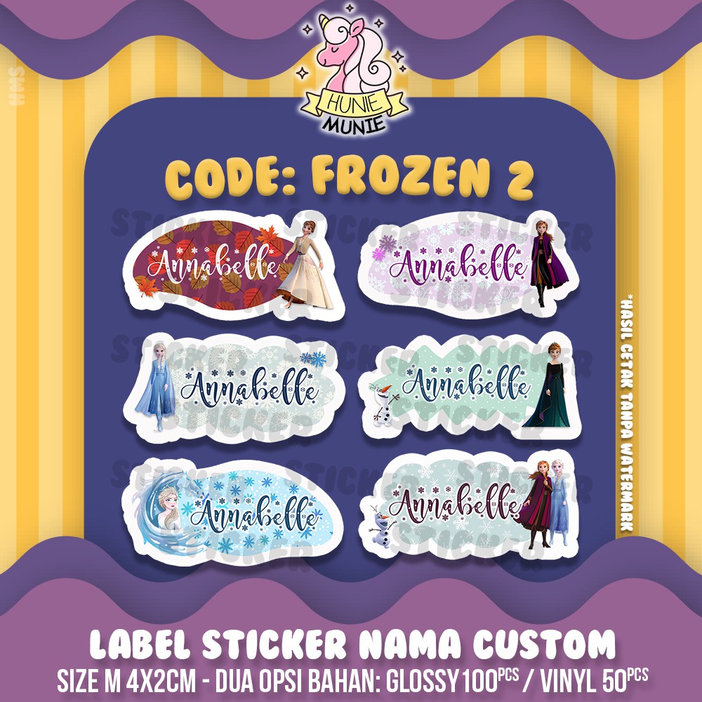 Sticker Label Nama Custom - Frozen Elsa Anna Princess (100pcs) Stiker