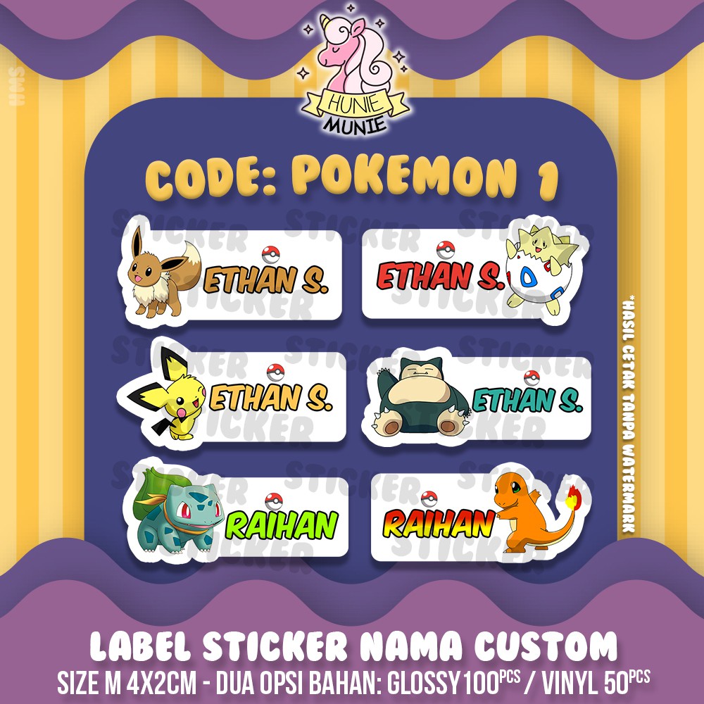 Sticker Label Nama Custom - POKEMON Series (100pcs+) Stiker Pikachu Bulbasour Charizard Jigglypuff Squirtle Poke Ball