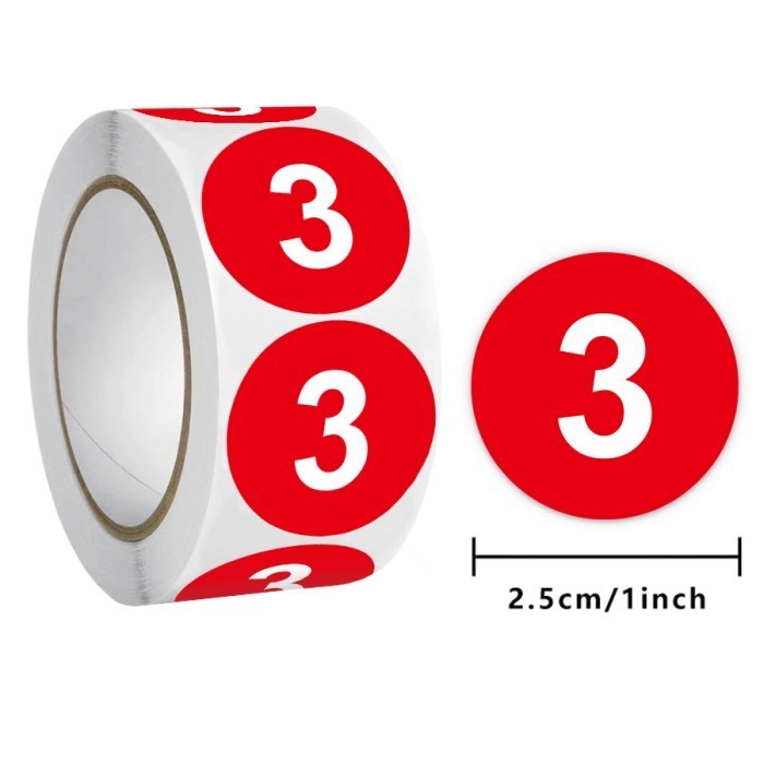 Sticker Label Size Ukuran Nomor Angka Bundar 2,5 cm (500pcs/ roll)