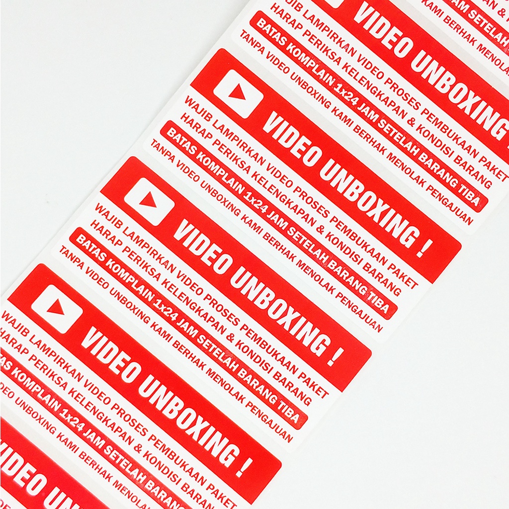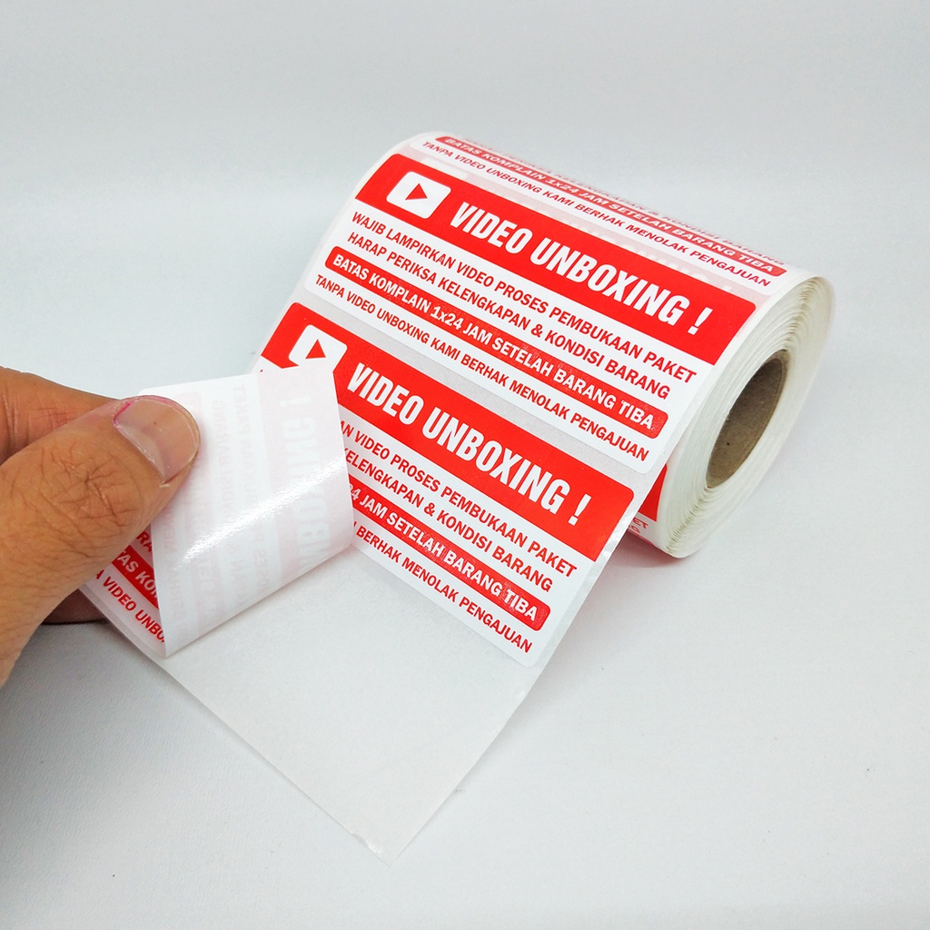 Sticker Label Wajib Video Unboxing Stiker Pengiriman Paket Online Shop 8,5 x 3,5 cm (1 roll/500 pcs)