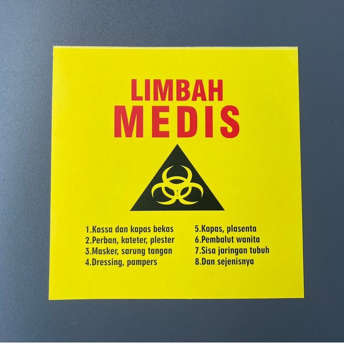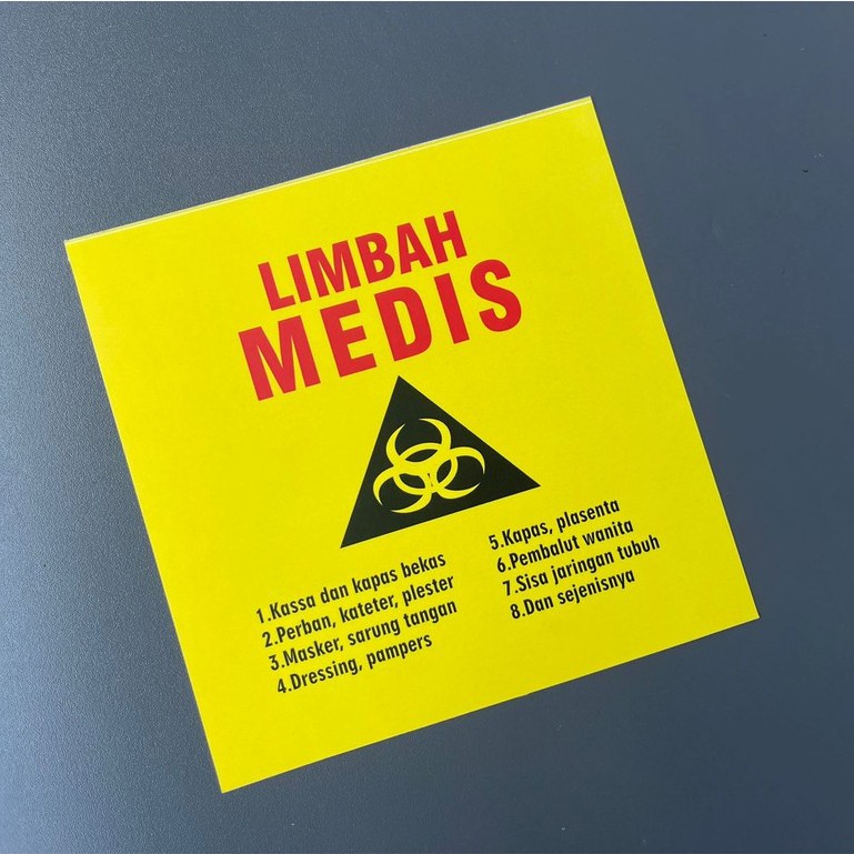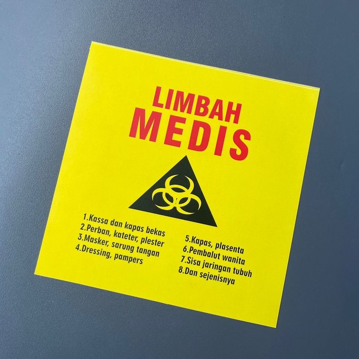 Sticker Limbah Medis, Sticker Label Limbah Medis, Warna Kuning | Bahan Vinyl | 15.5 x 15.5 cm