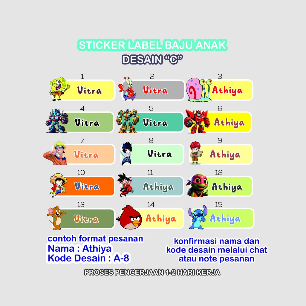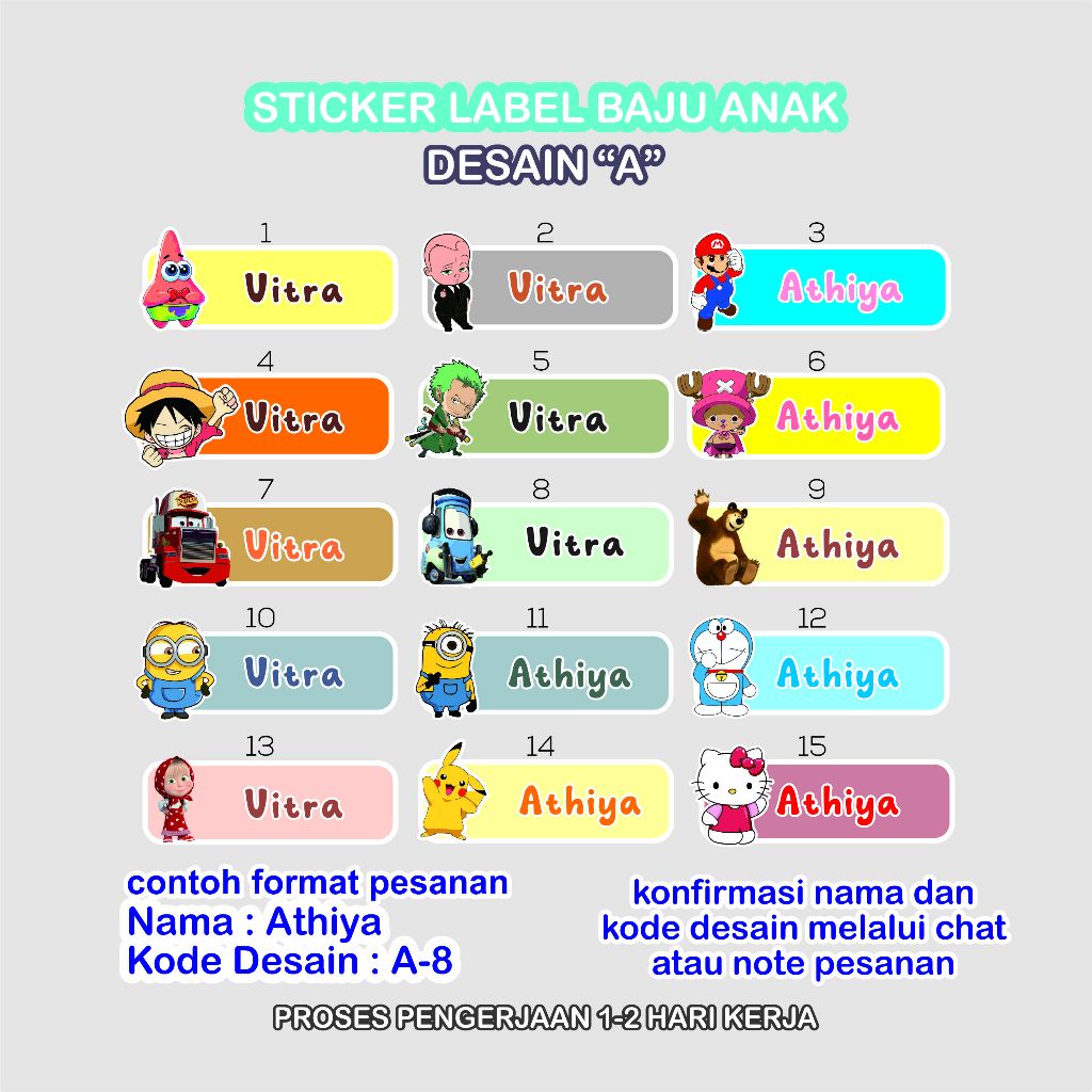 DTF Label Nama Baju Anak Sekolah – Bisa Disetrika, Tahan Cuci (50pcs)