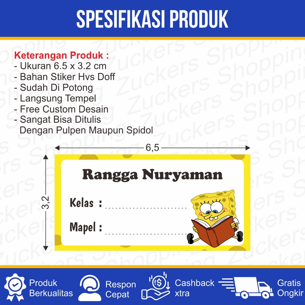 Sticker Nama Buku Custom / Sticker Label Buku Sekolah Anak [ Min 30 Pcs ]