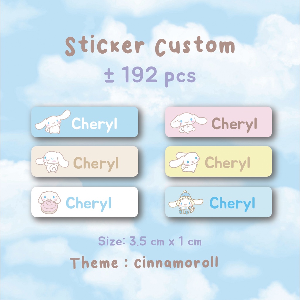 Sticker Nama Custom Karakter Lucu 192 pcs/ Stiker Premium Waterproof Anti Luntur