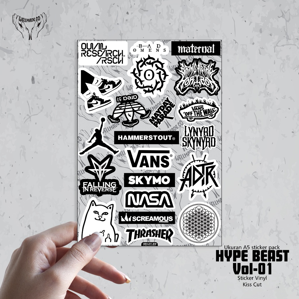 Sticker Pack Aesthetic HYPE BEAST Tumblr Helm Laptop BLACK & WHITE & FULL COLOUR