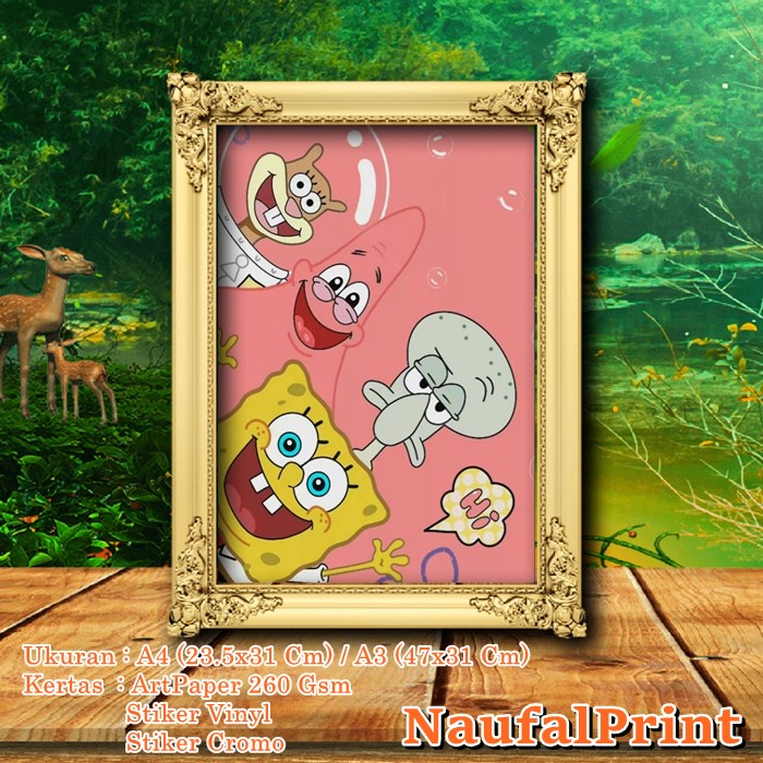 Sticker Poster Spongebob squarepant patrik tuang krab sendy plangton kartun anak a3 a3+ a4 custom hiasan rumah wall | decor home decor Dekorasi Seni Ivory Stiker Vynil Lukisan | Hiasan Dinding Kamar naufal Print | Vol-6