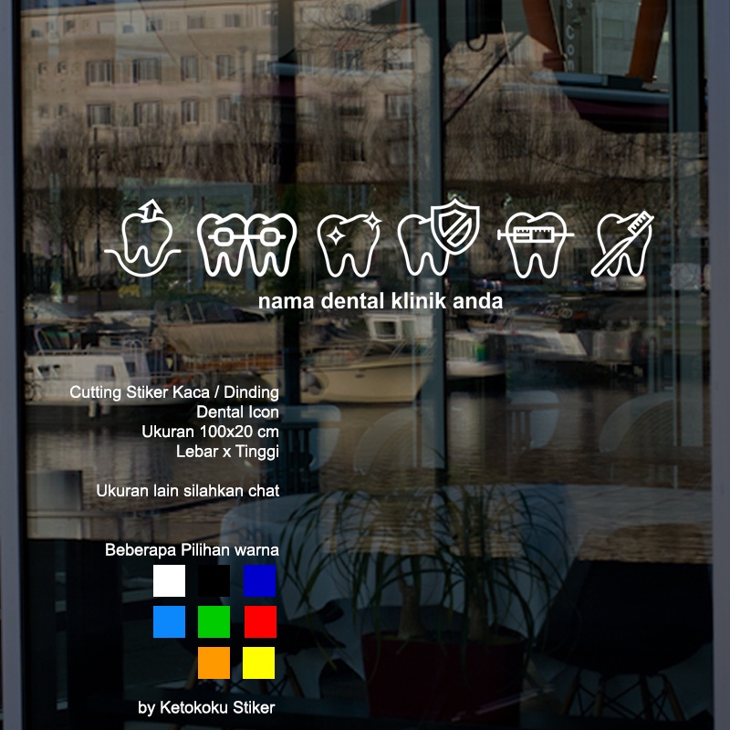 Sticker Praktek Klinik Dokter Gigi Dental Icon Kaca dan Dinding Custom Tulisan