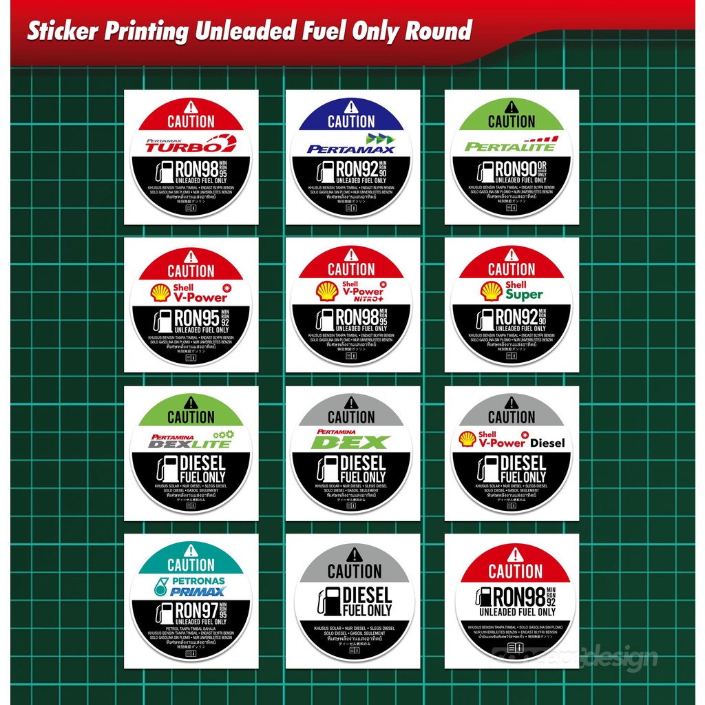 Sticker Printing Unleaded Fuel Only Round