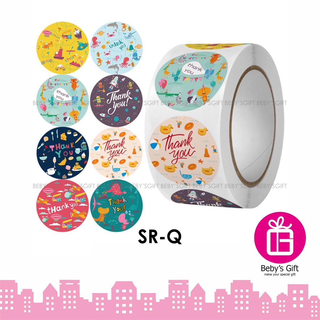 Sticker Roll Happy Birthday Bulat Thank You Stiker Label Gulung