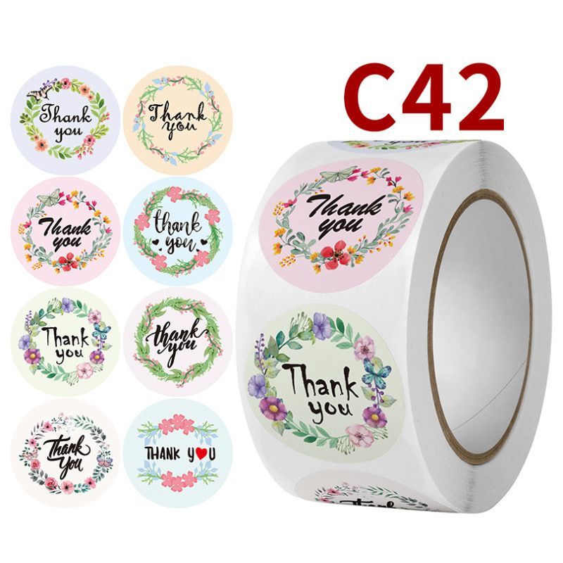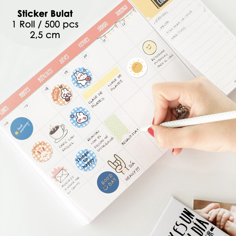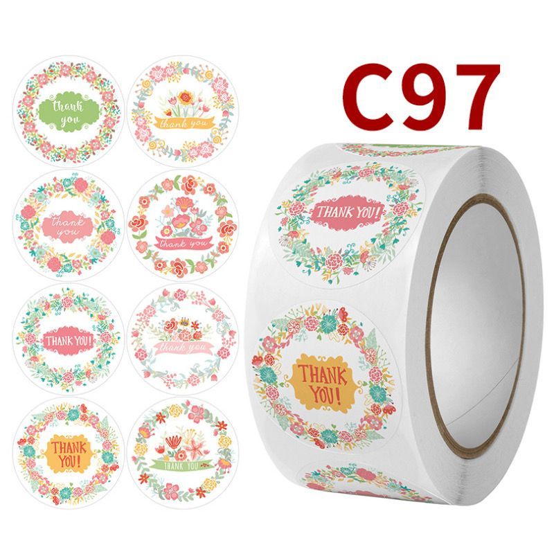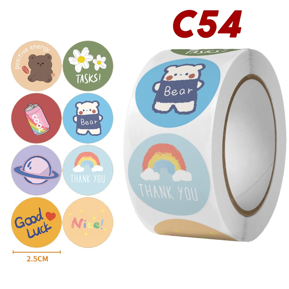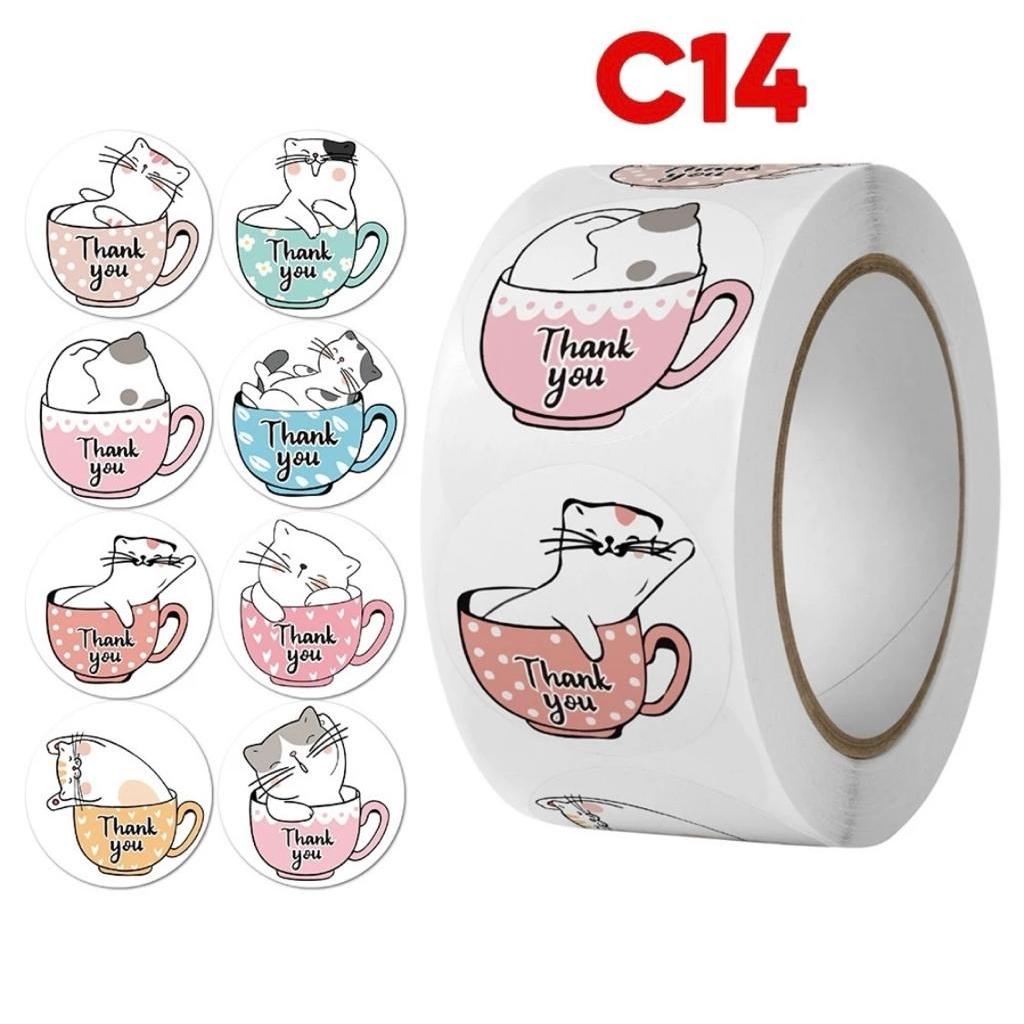 Sticker Roll Karakter Lucu 500 pcs 2.5 cm Stiker Thank You Bulat Label Tempel Kartun - ST001