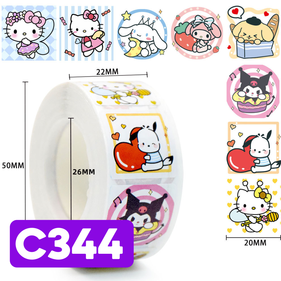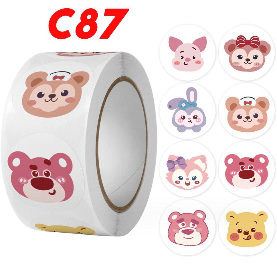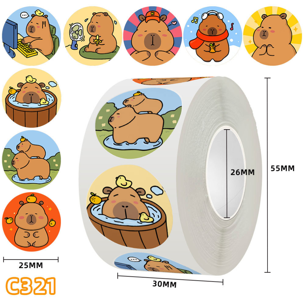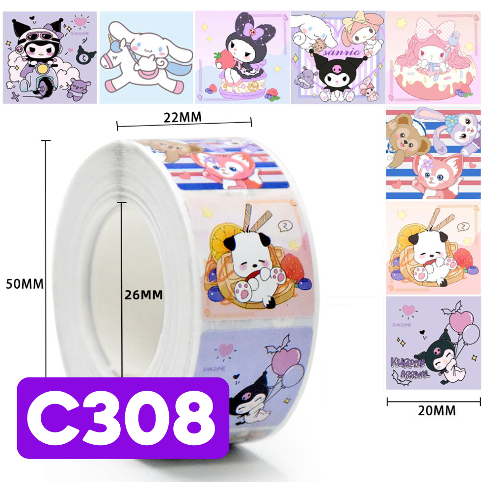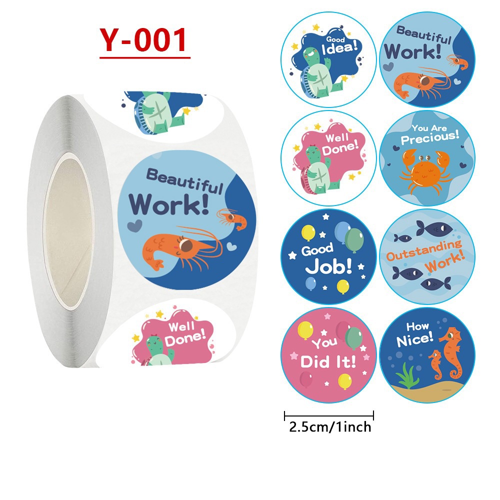 Sticker Roll Karakter Lucu 500 pcs 2.5 cm Stiker Thank You Bulat Label Tempel Kartun - ST001
