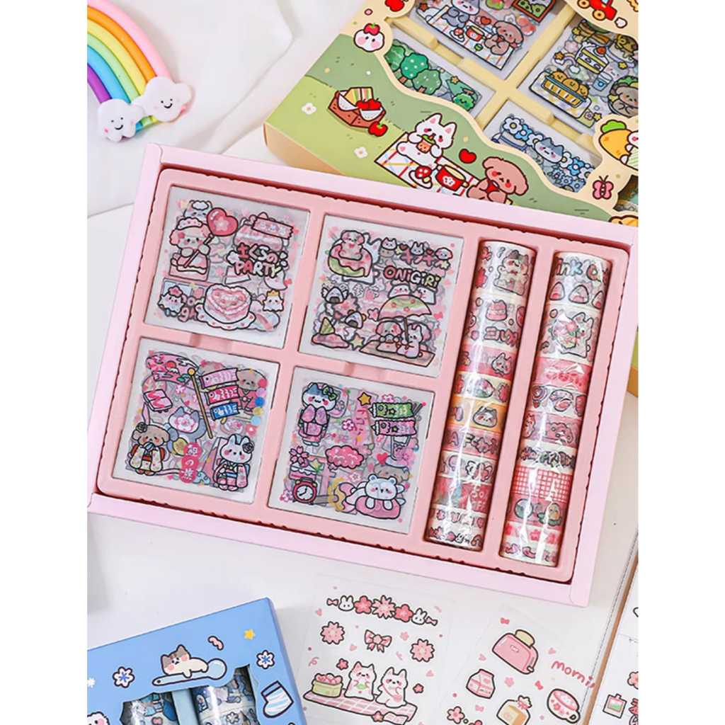 Sticker SET Box Momo [STICKER+SOLATIP] Washi Sticker Set Dekor Dairy Jurnal Anak