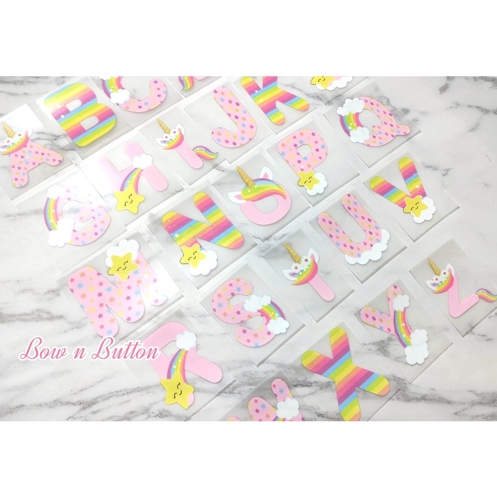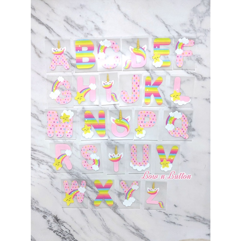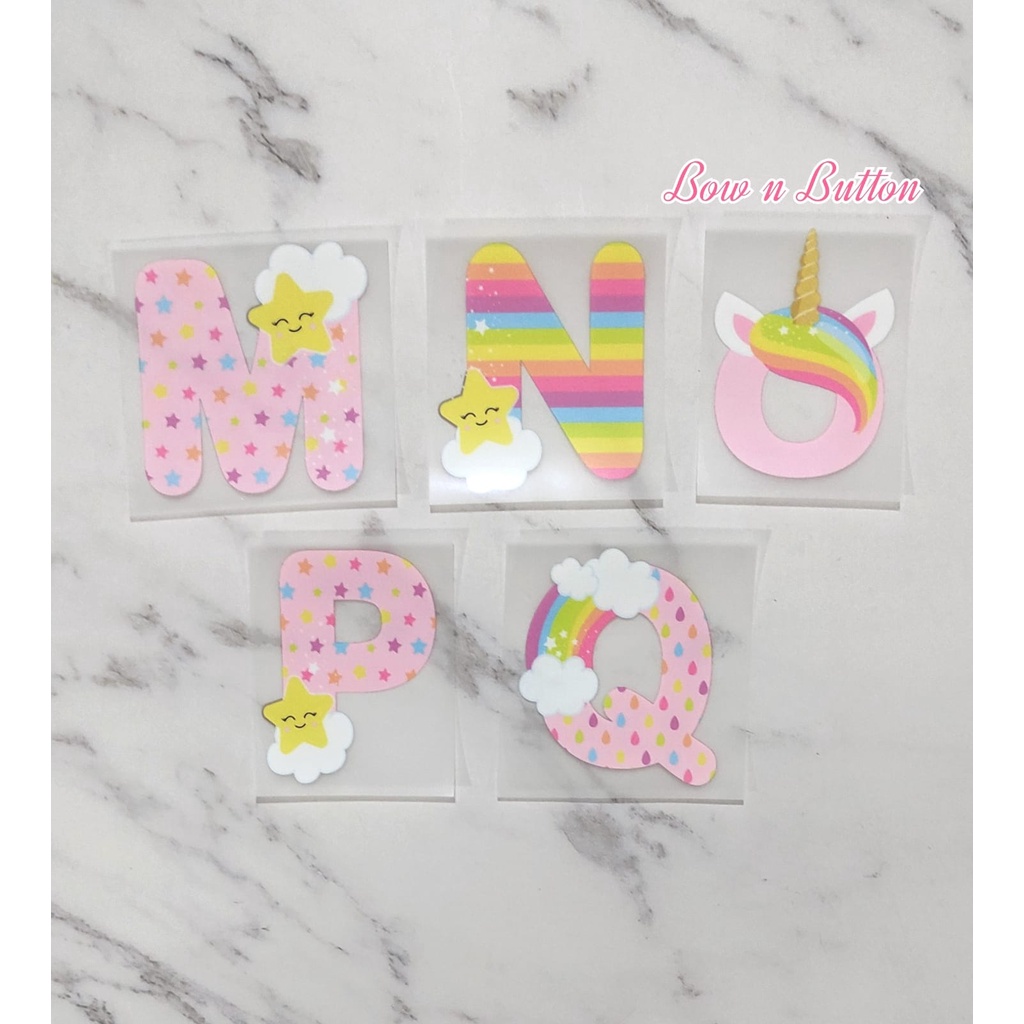 Sticker Sablon Baju Huruf Alfabet Unicorn Pink Iron DIY Patch Craft Custom Stiker Cute Girl Boys Pinky
