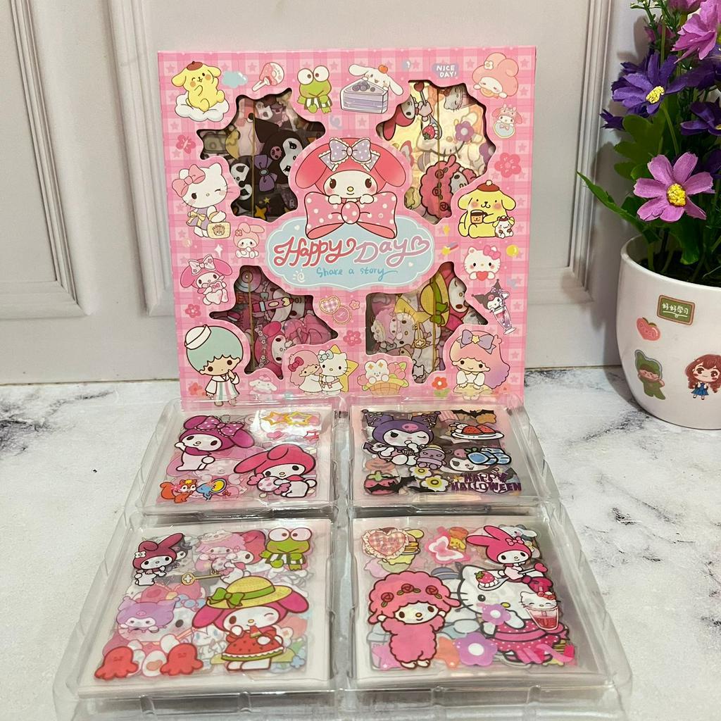 Sticker Sanrio 100 Lembar Lengkap / Stiker Sanrio 1 box isi 100 lbr Transparan Anti Air Kuromi Cinnamoroll Favorit Anak Stationary Alat Tulis Kekinian Imut Lucu Unik Bisa Grosir