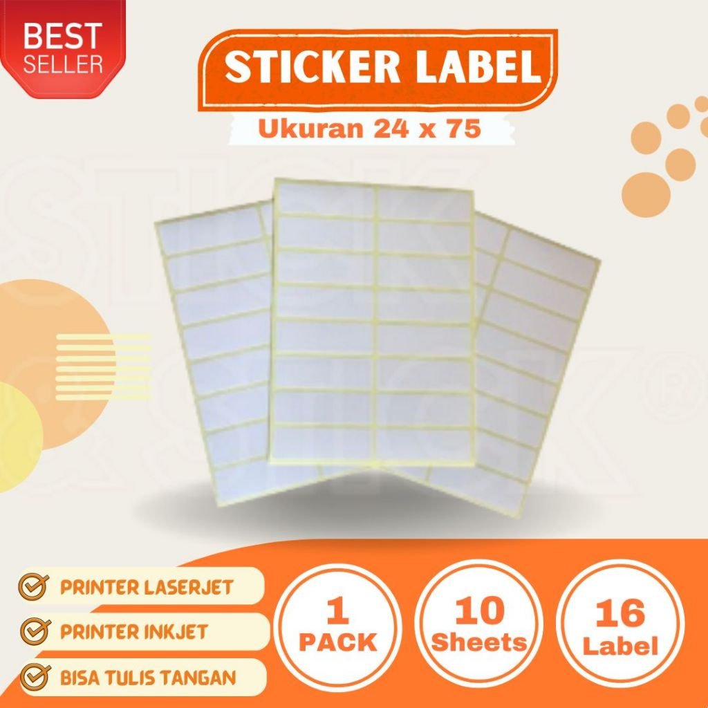 Sticker Self Adhesive Address Label 24x75 mm Tom Putih Polos Premium