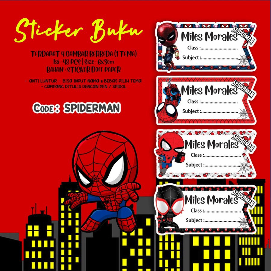 Sticker / Stiker Buku Custom Nama Karakter Tema Spiderman