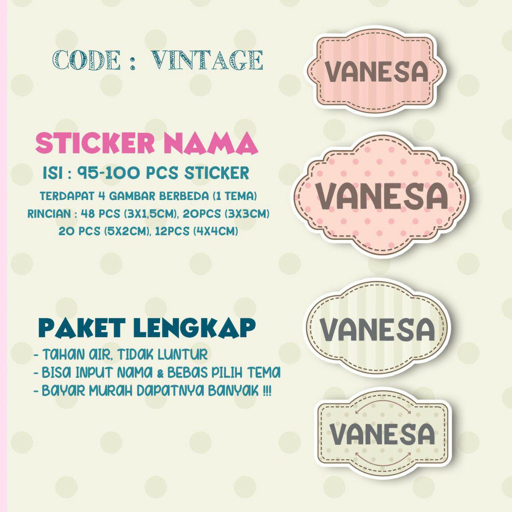 Sticker / Stiker Label Nama Custom Karakter Tema VINTAGE