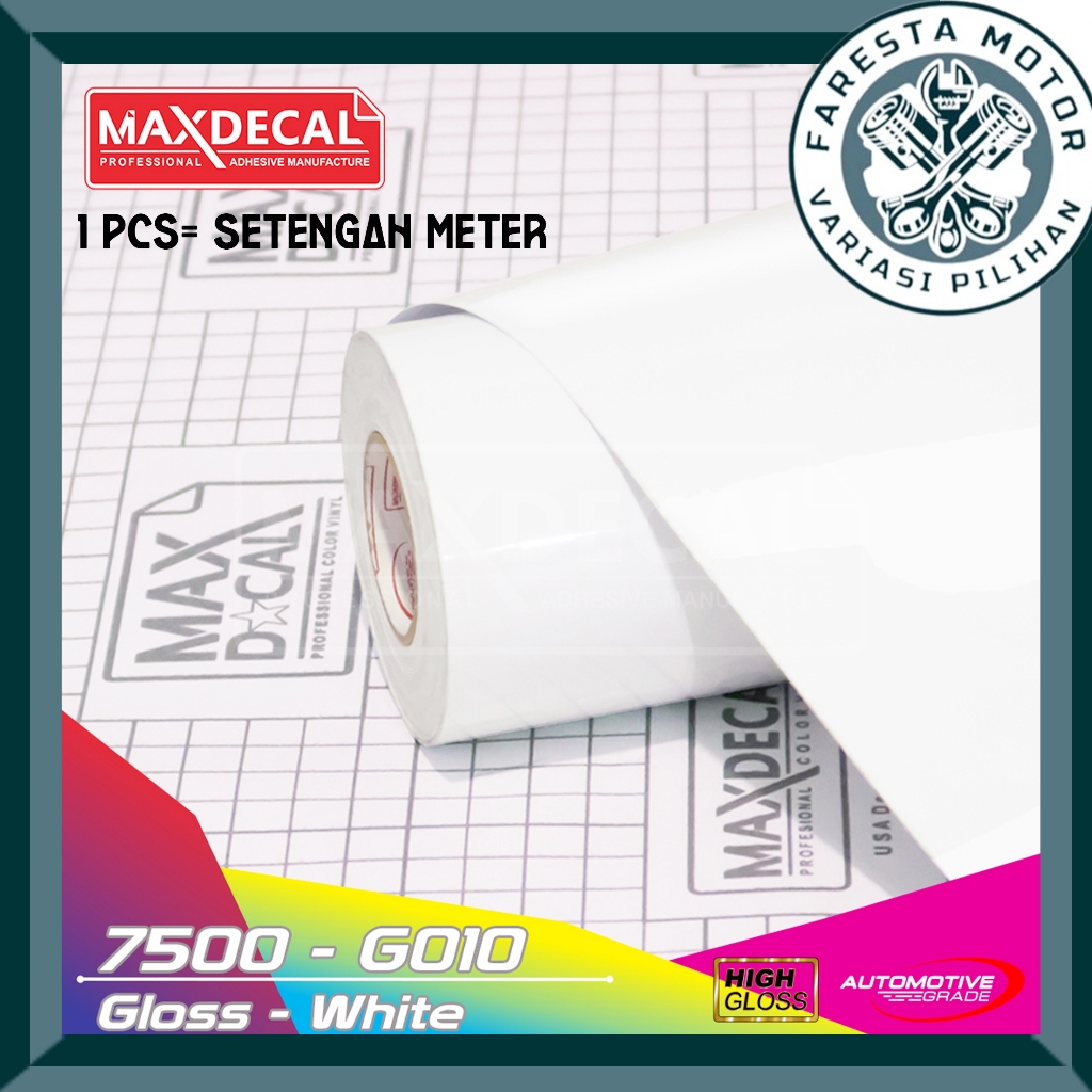 Sticker Stiker Skotlet Wrapping Vinyl Maxdecal Max Decal 7500-G010 Gloss White Putih mengkilap 45cm