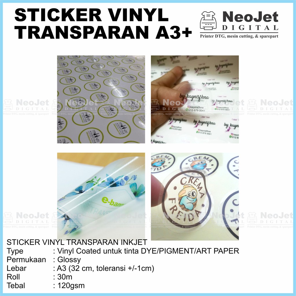 Sticker Stiker Vinyl Inkjet Transparan Bening Gloss A3+ 30 Meter Murah Transparant Transparent