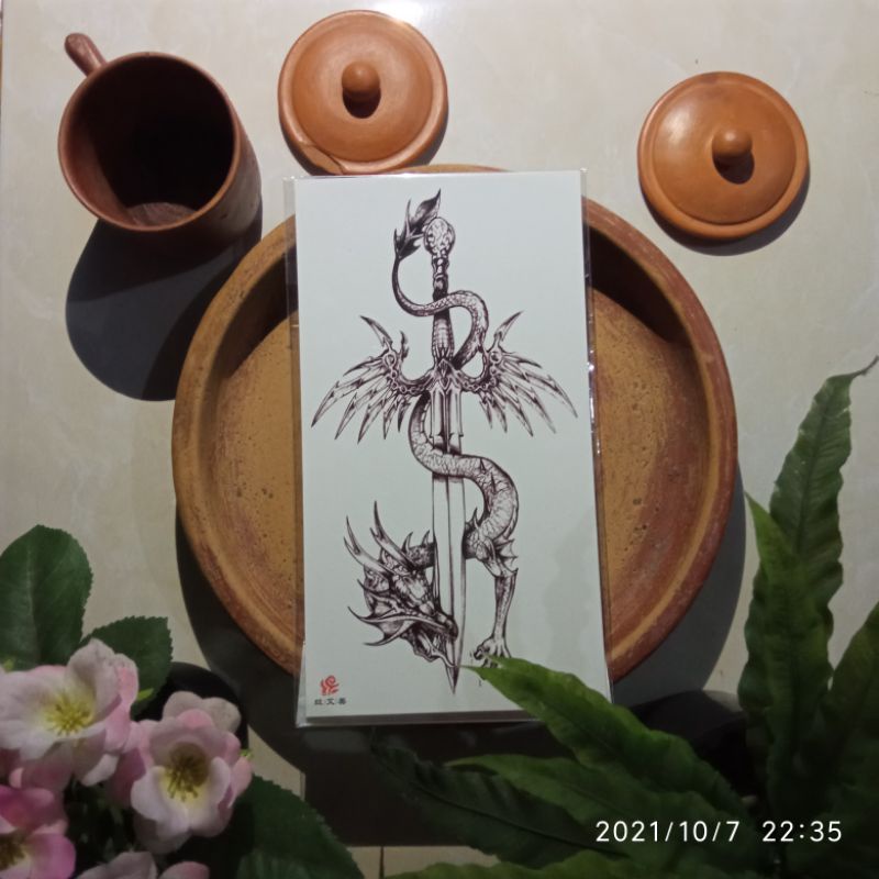 Sticker TATTOO TEMPORER MOTIF PEDANG HITAM PUTIH (BISA COD)