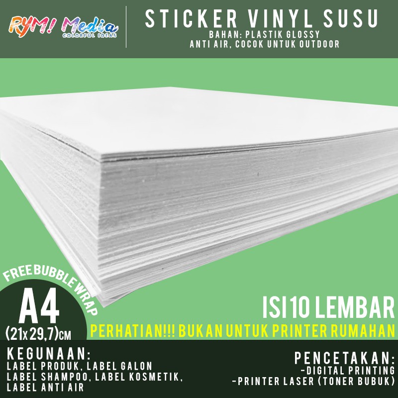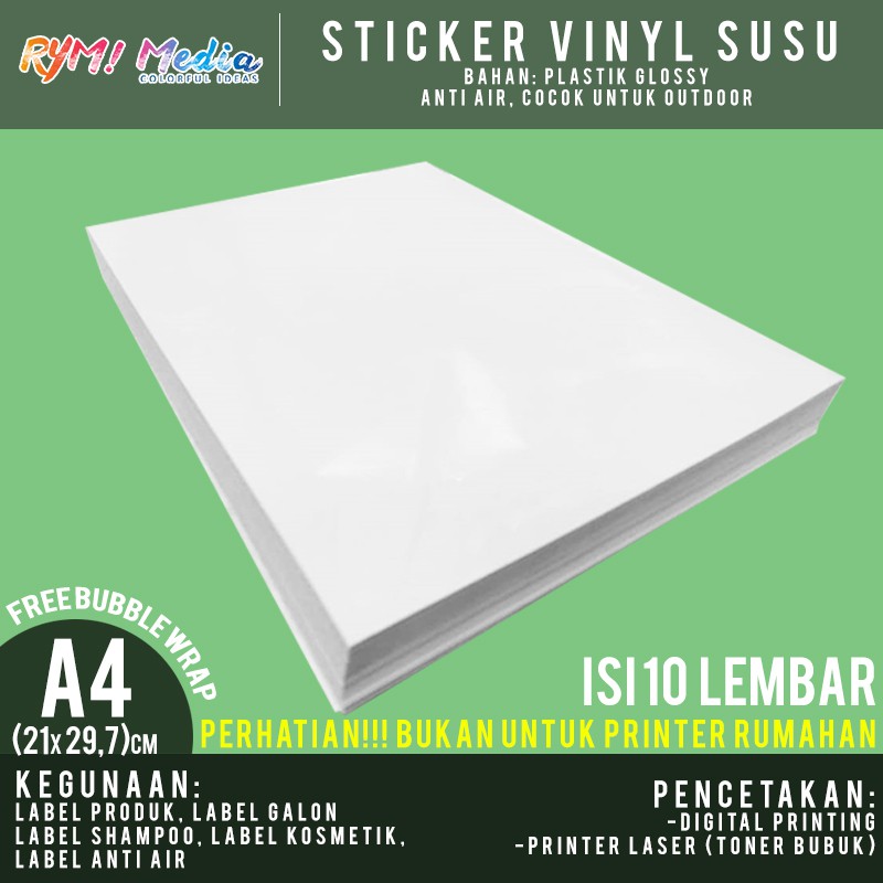 Sticker Vinyl Glossy A4 isi 10 Lembar / Stiker Vinyl Susu Mengkilap A4