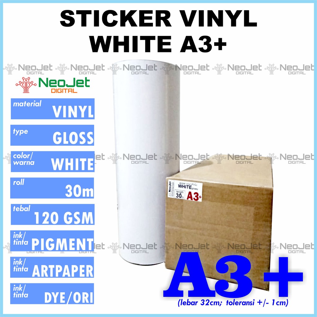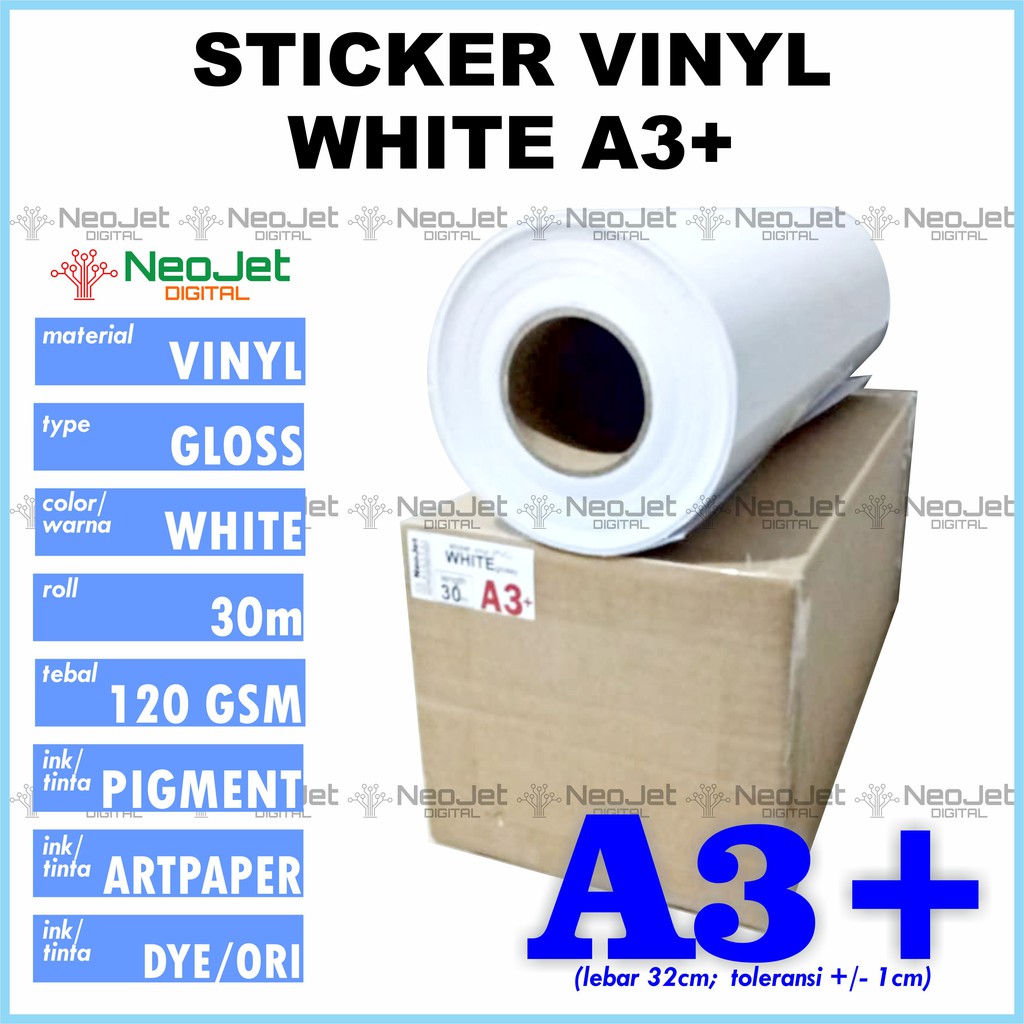 Sticker Vinyl Inkjet White Glossy A3+ Panjang 30 Meter