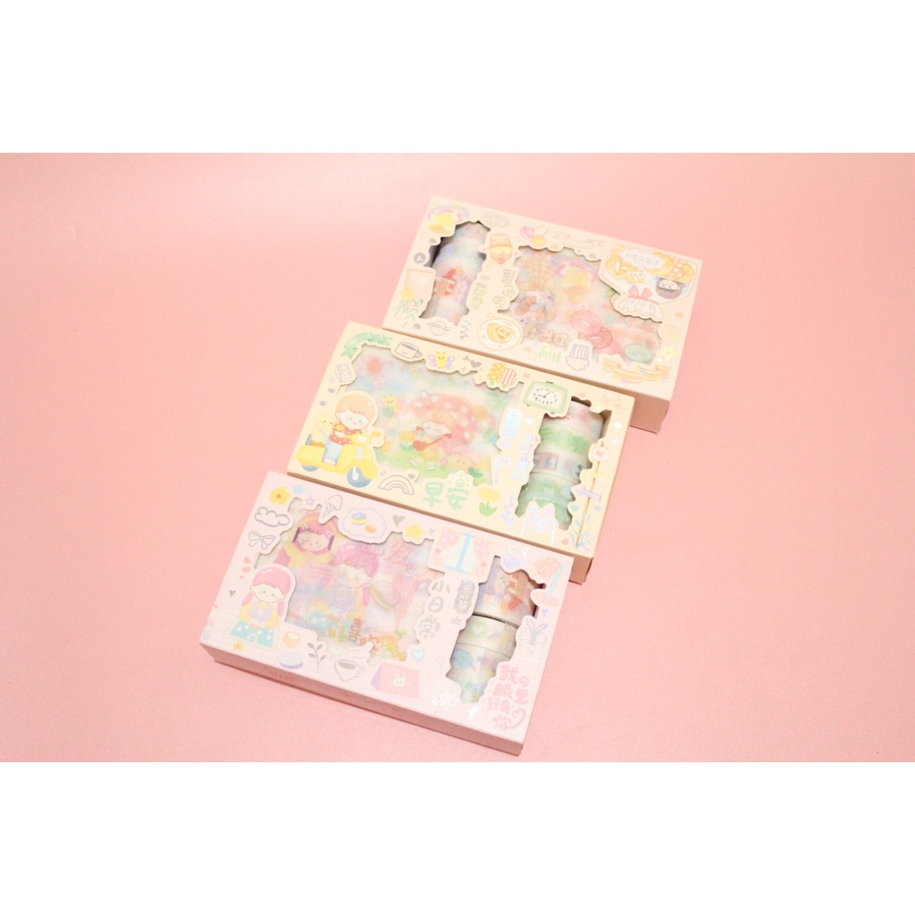 Sticker box label selotip + Free Pisau Potong - YDMSTZ28 PINK KUNING UNGU HIJAU - washi tape cute girl kado unik bungkus gambar hadiah sovenir alat tulis kerja sekolah kantor lucu