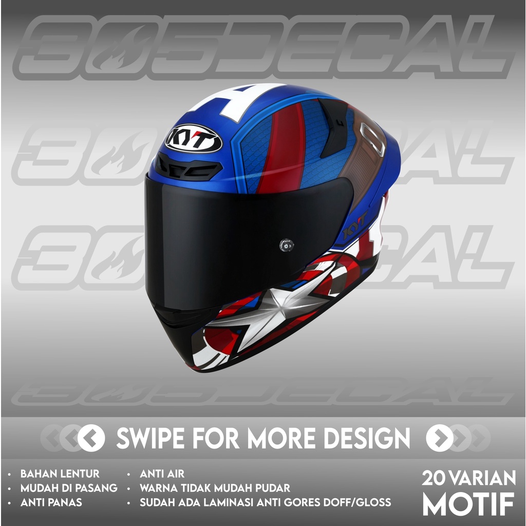 Sticker decal helm KYT TT Course TTC motif Captain Amerika | decal helm | decal sticker
