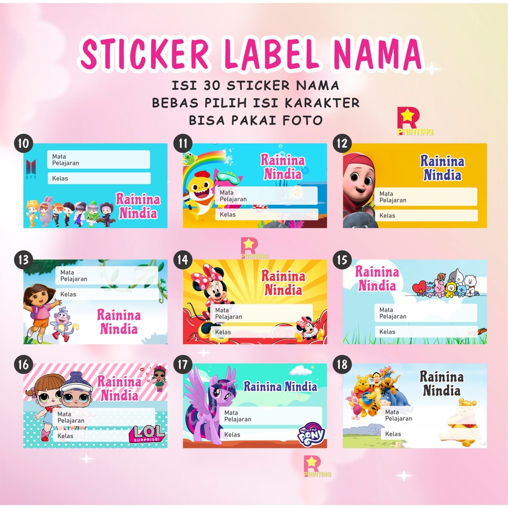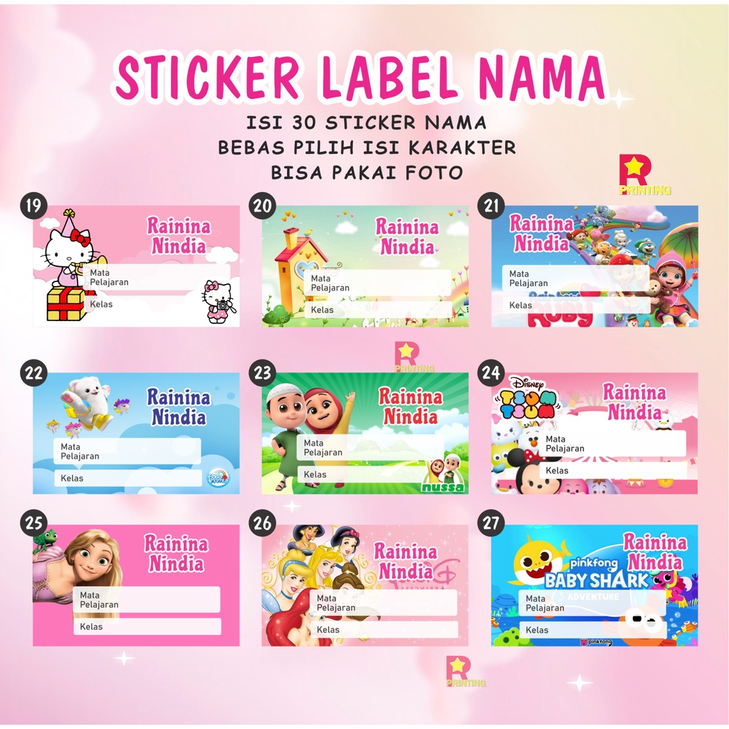 Sticker mapel isi 30, Sticker Buku Mata Pelajaran Sekolah Seri cewek, sticker nama mapel