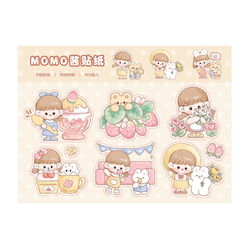 Sticker momo set isi 10lbar / sticker aesthetic / sticker Washi / sticker motif Diy WSP1