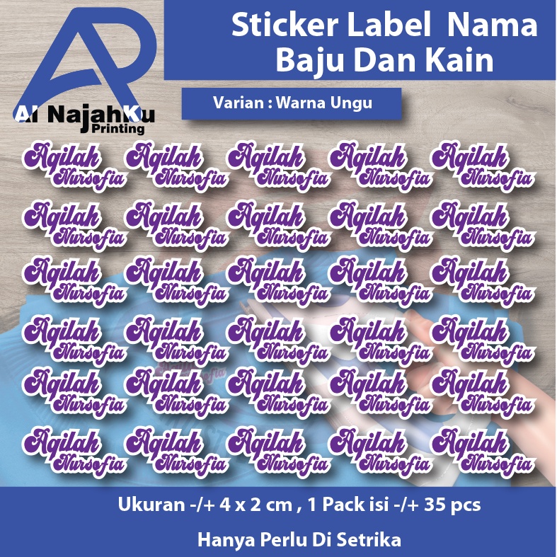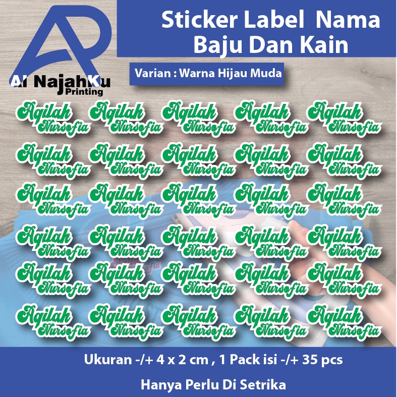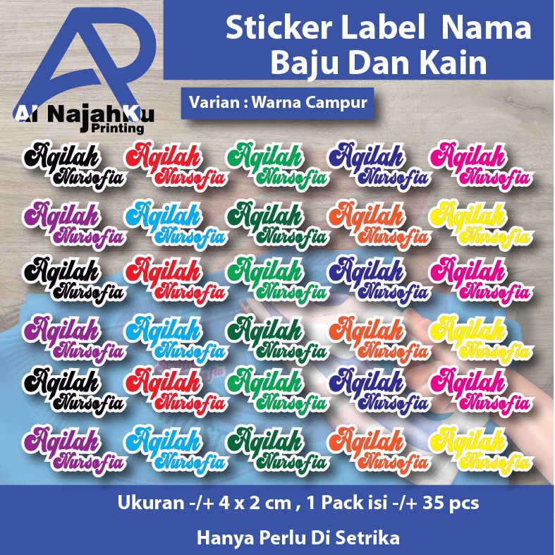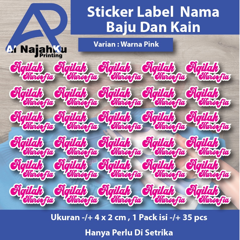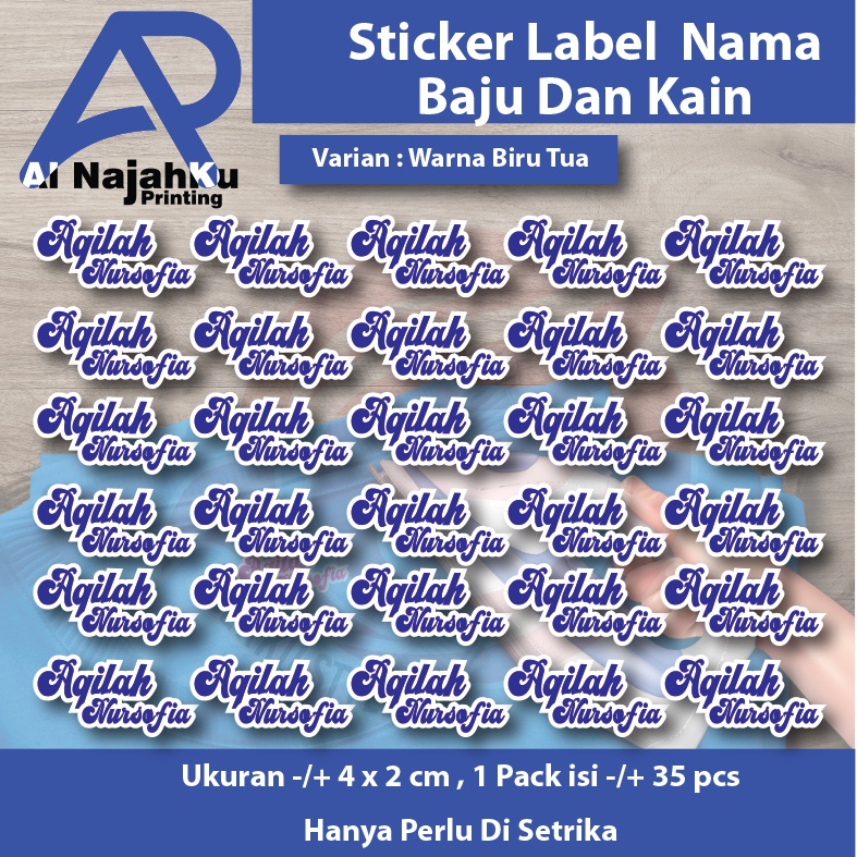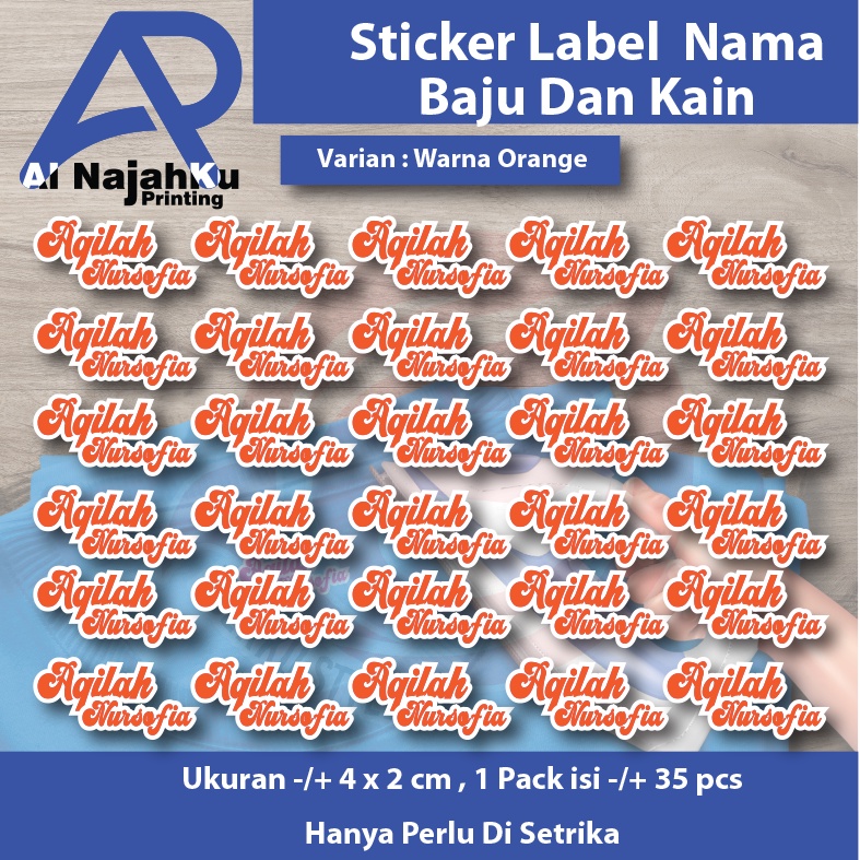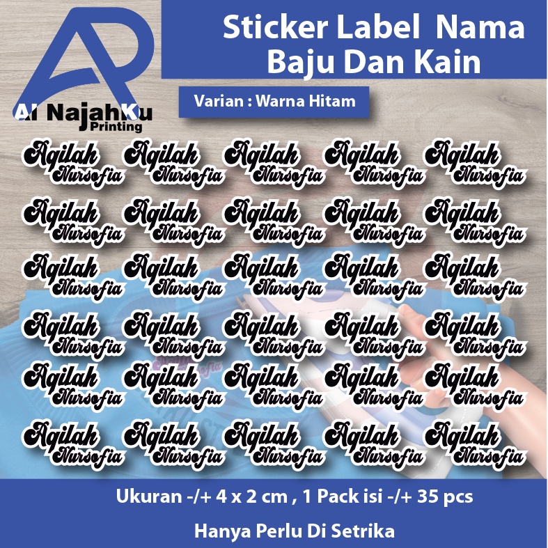 Sticker sablon Label Nama Kain Baju Kaos Sablon Setrika Sticker Iron Custom Tulisan (Per Pack isi 35 Pcs) ukuran 4x2 cm
