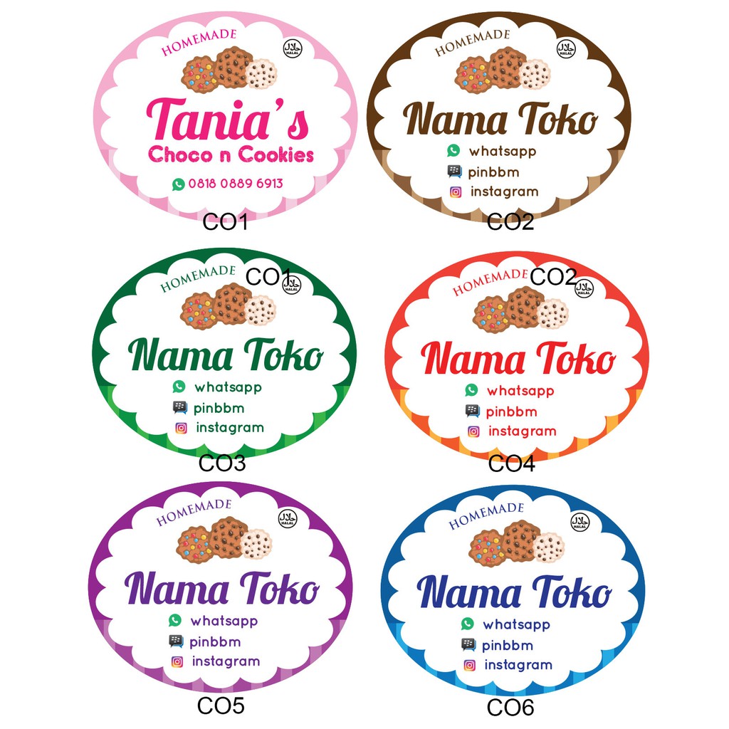 Sticker / stiker label nama toko produk cookies / makanan manis / kue