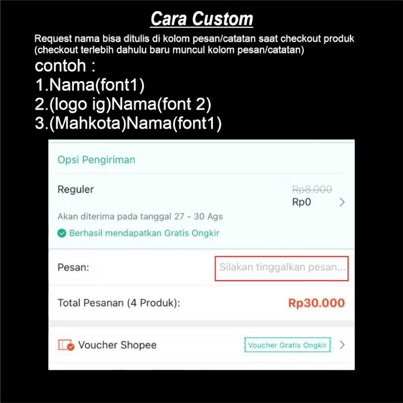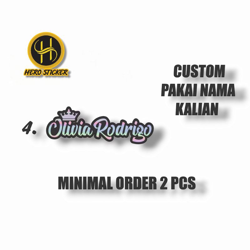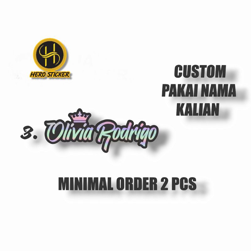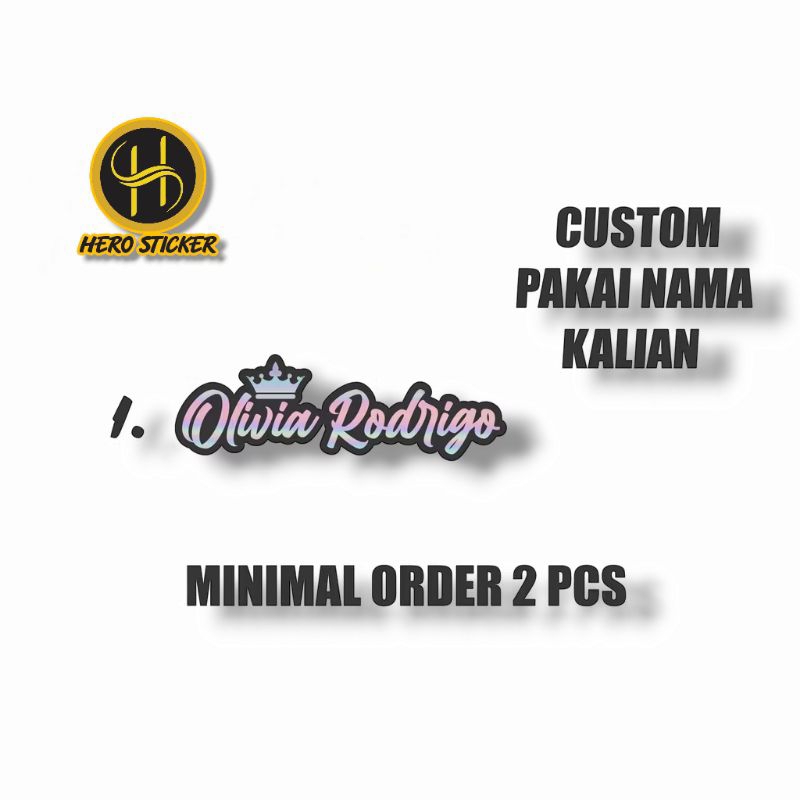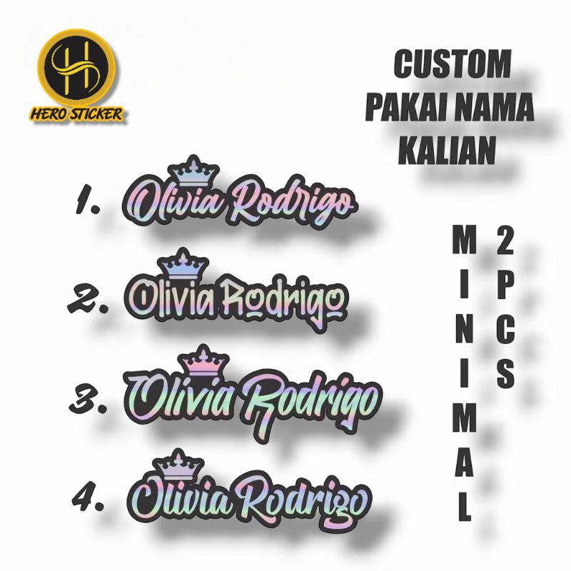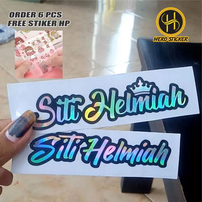 Sticker stiker nama mahkota custom hologram pinggiran hitam