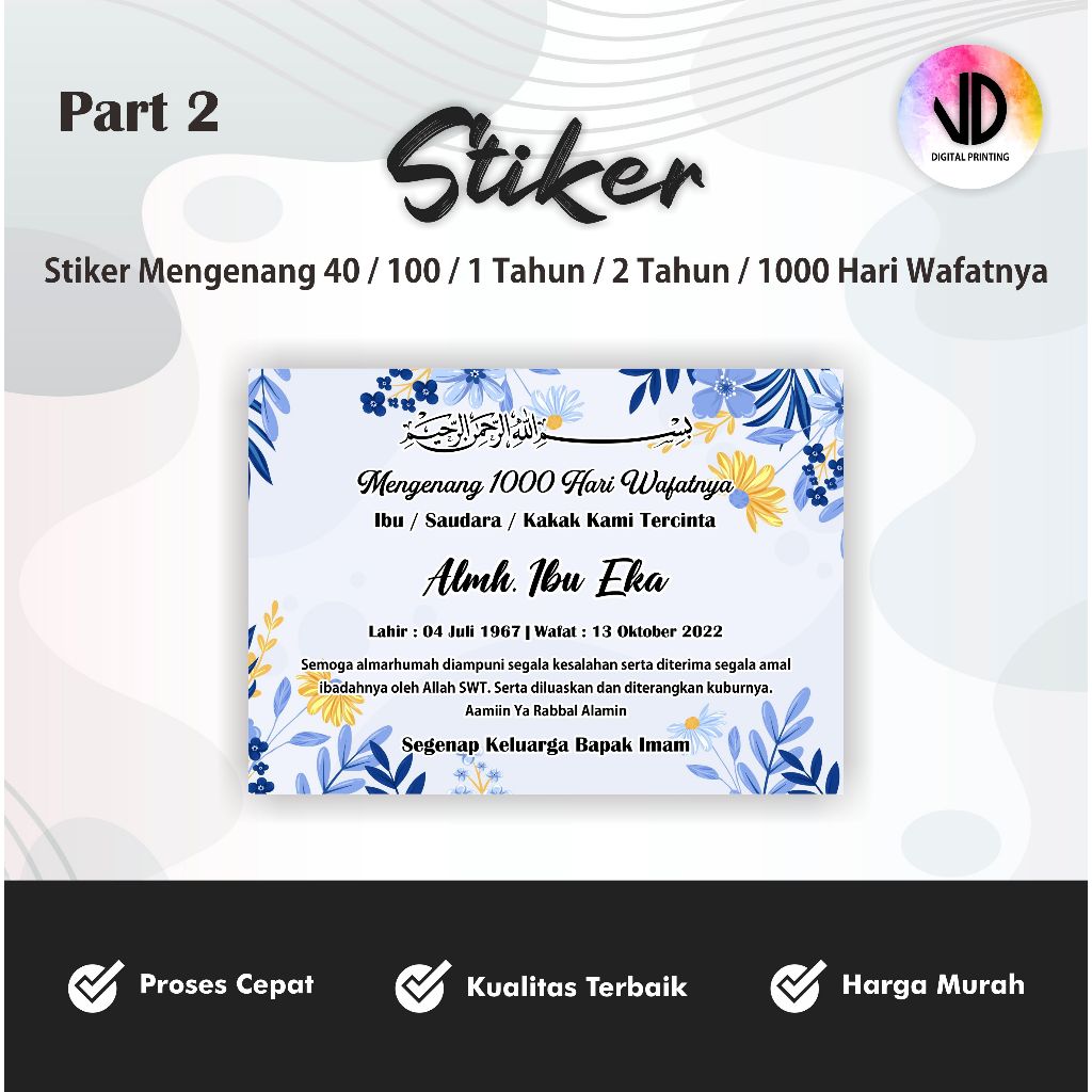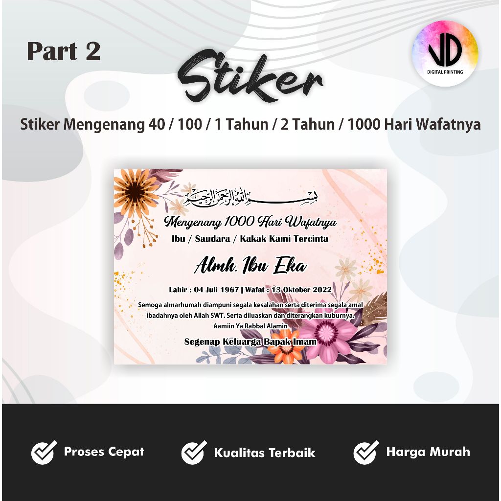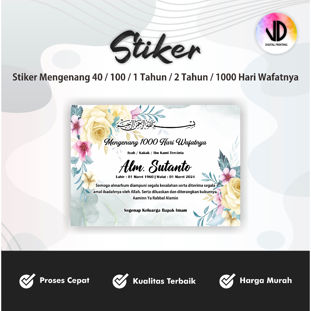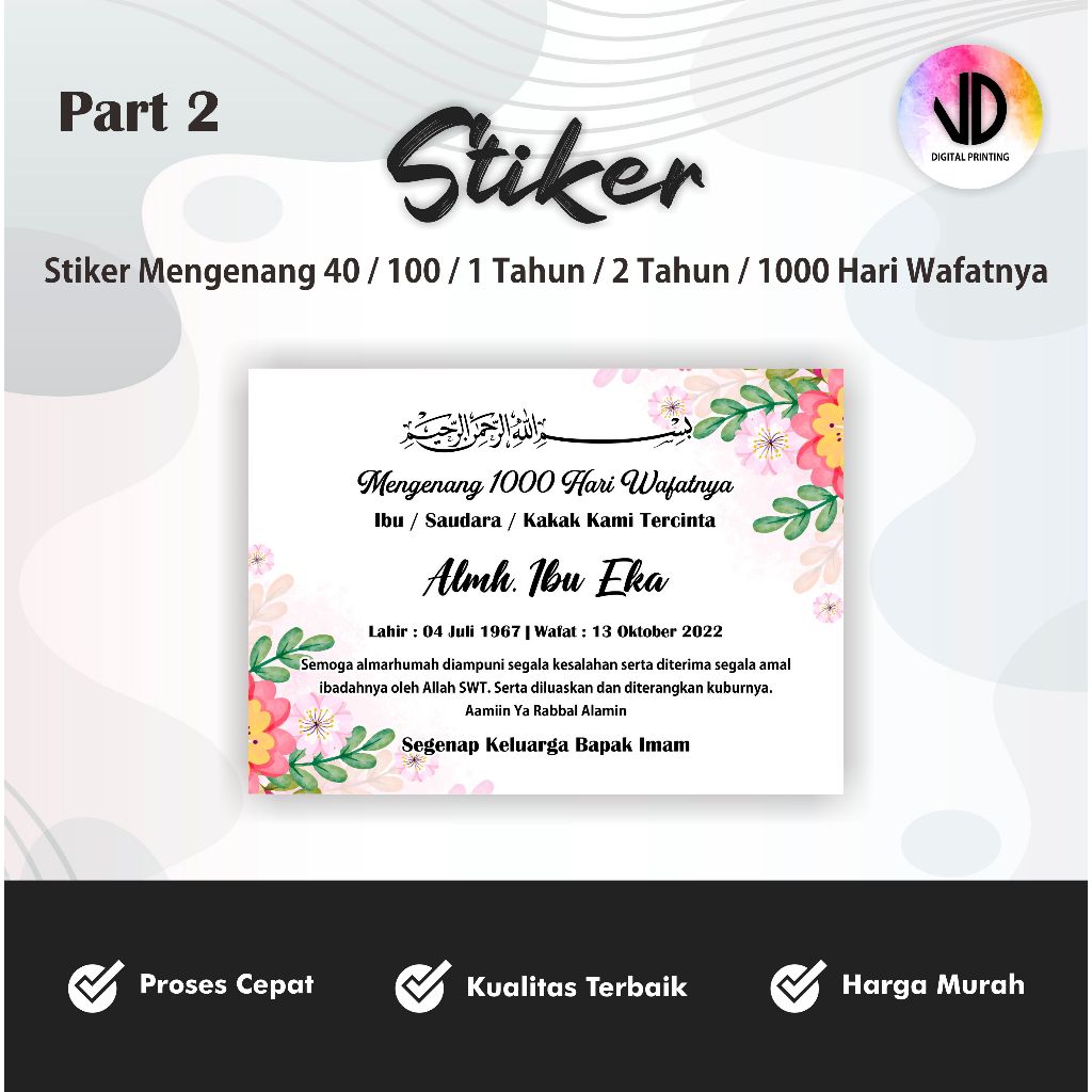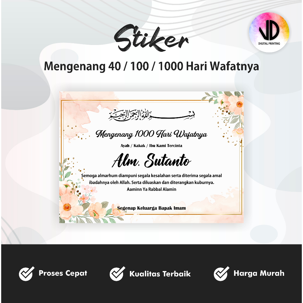 Sticker untuk TAHLIL 40 / 100 / 1000 Hari (Stiker Tasyakuran Murah)